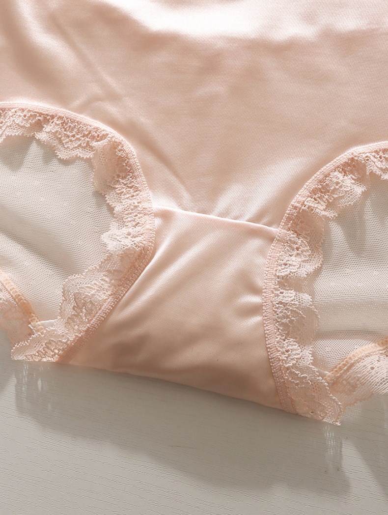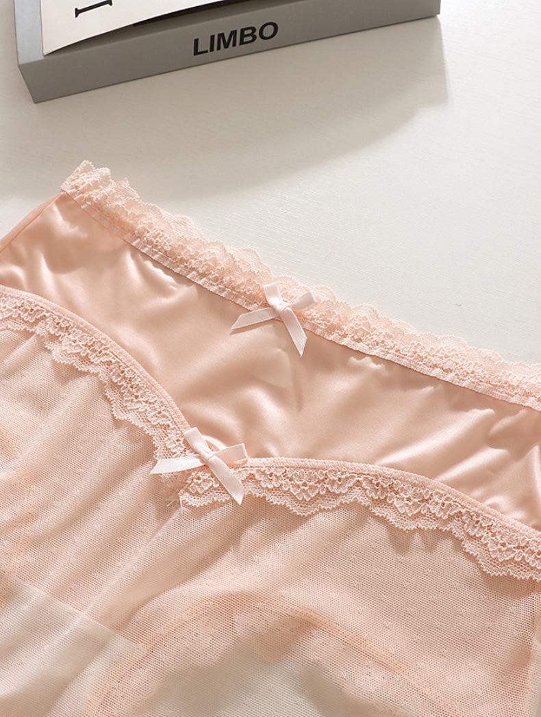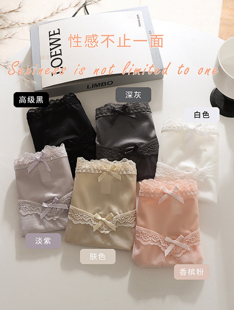 일본식 중간 높이 허리 새틴 속옷 여성용 레이스 메쉬 뽕나무 실크 복숭아 엉덩이 커버 여성용 속옷 섹시한 순수한 욕망