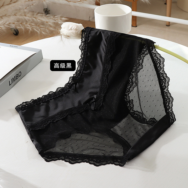 일본식 중간 높이 허리 새틴 속옷 여성용 레이스 메쉬 뽕나무 실크 복숭아 엉덩이 커버 여성용 속옷 섹시한 순수한 욕망스토어 가기