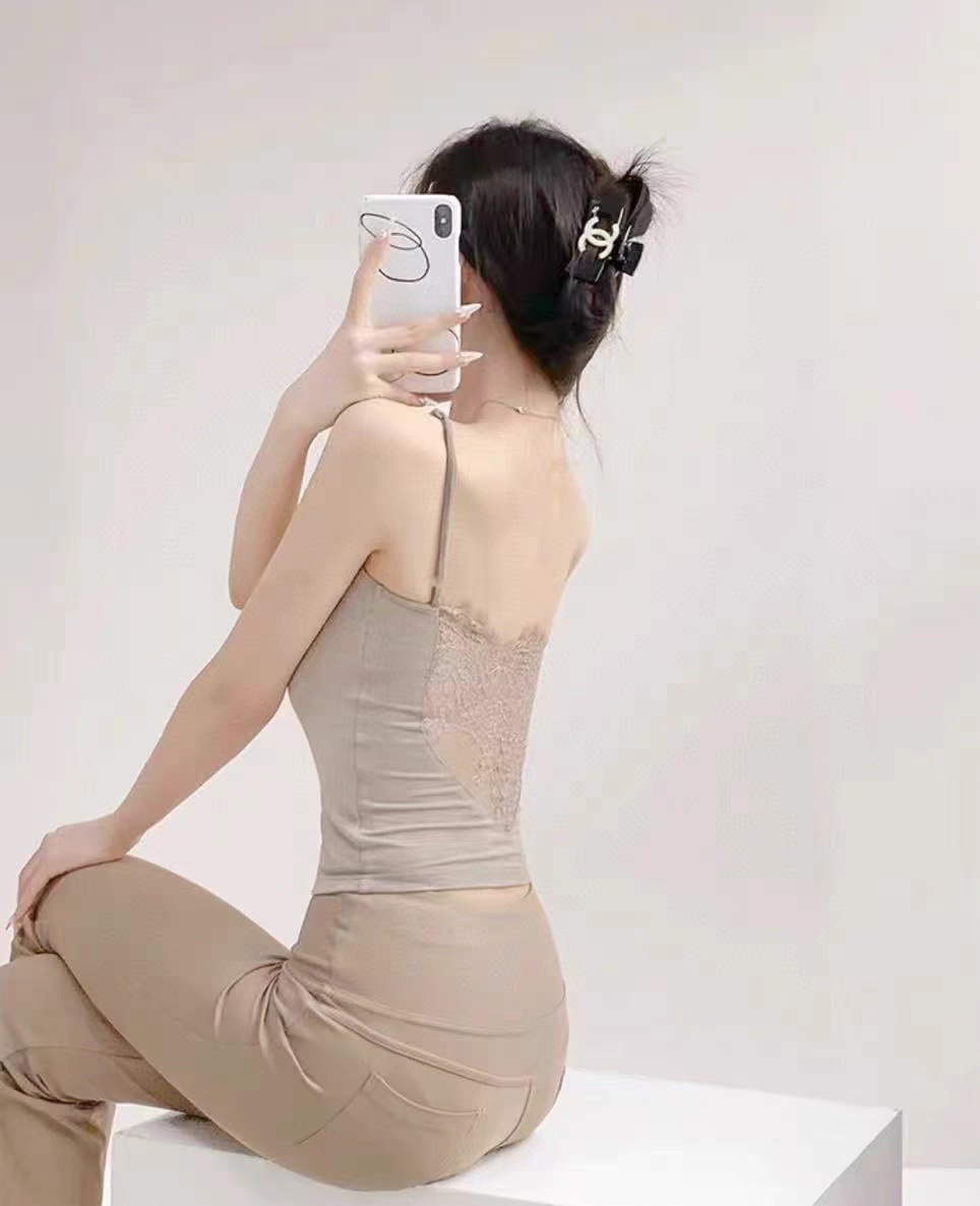 L270 아메리칸 스타일 뜨거운 소녀 섹시한 레이스 아름다운 뒤 스트랩 조정 가능한 어깨 스트랩 섹시한 슬리밍 백 할로우 조끼