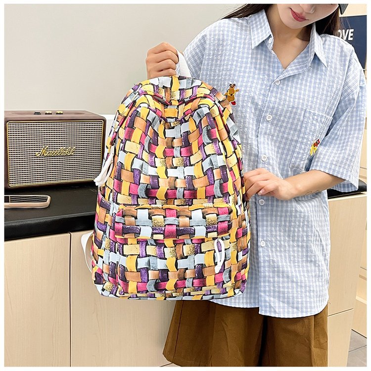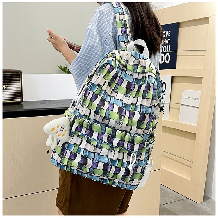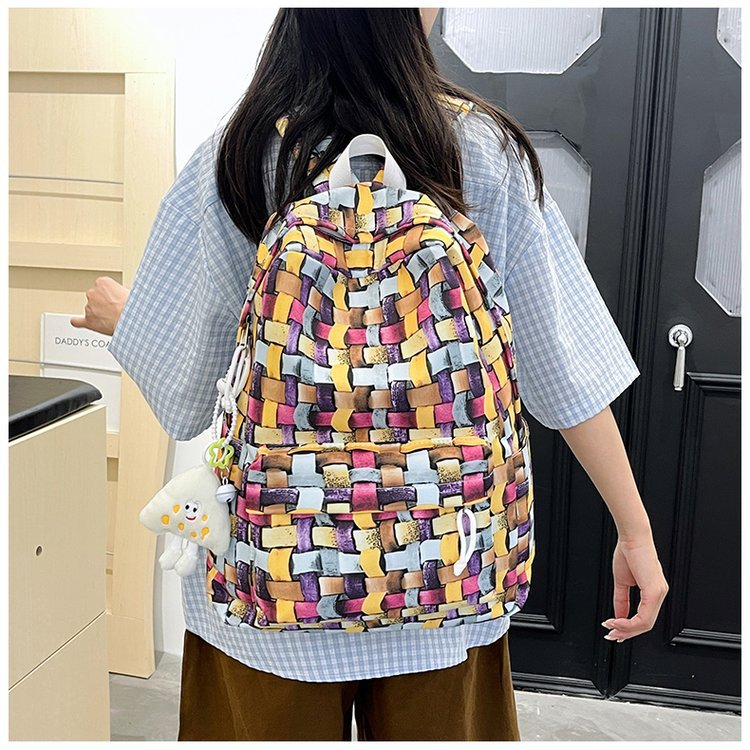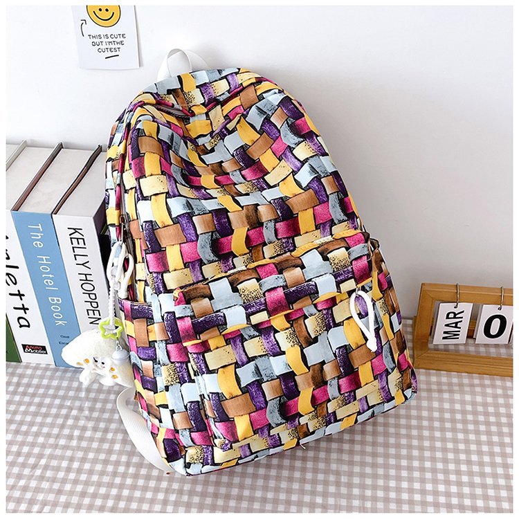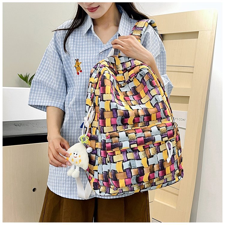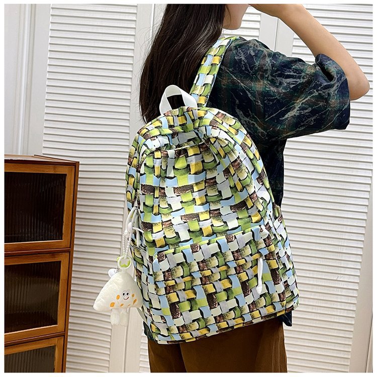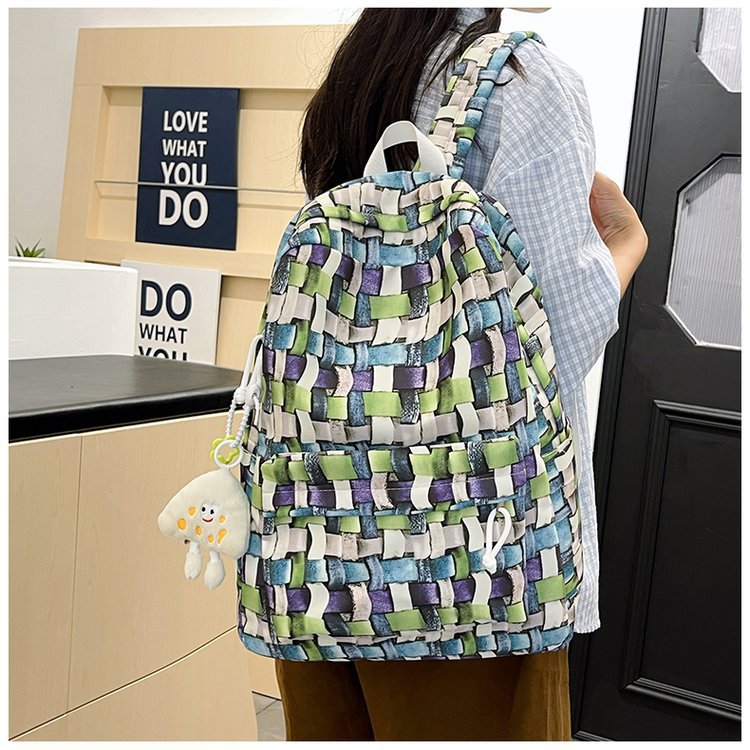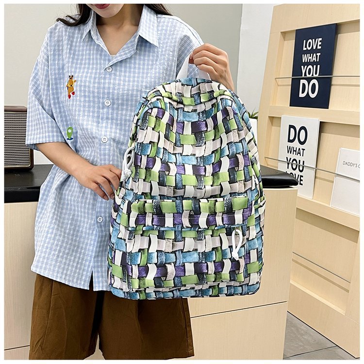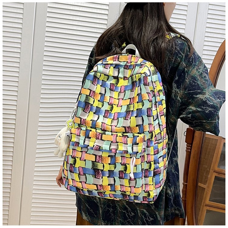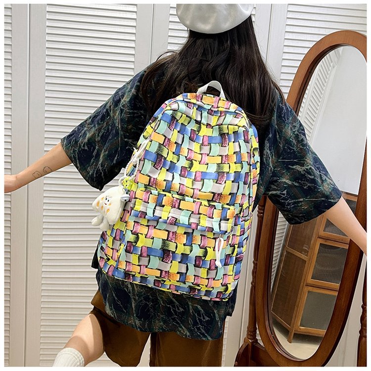 새로운 Ins Plaid 캐주얼 올 매치 높은 가치 틈새 그라디언트 디자인 중학교 고등학교 대학 배낭스토어 가기