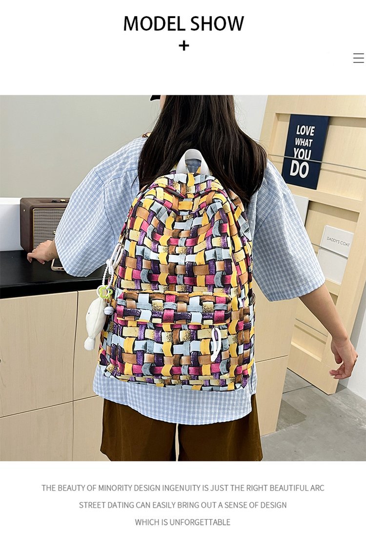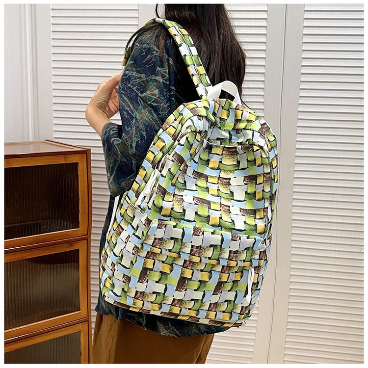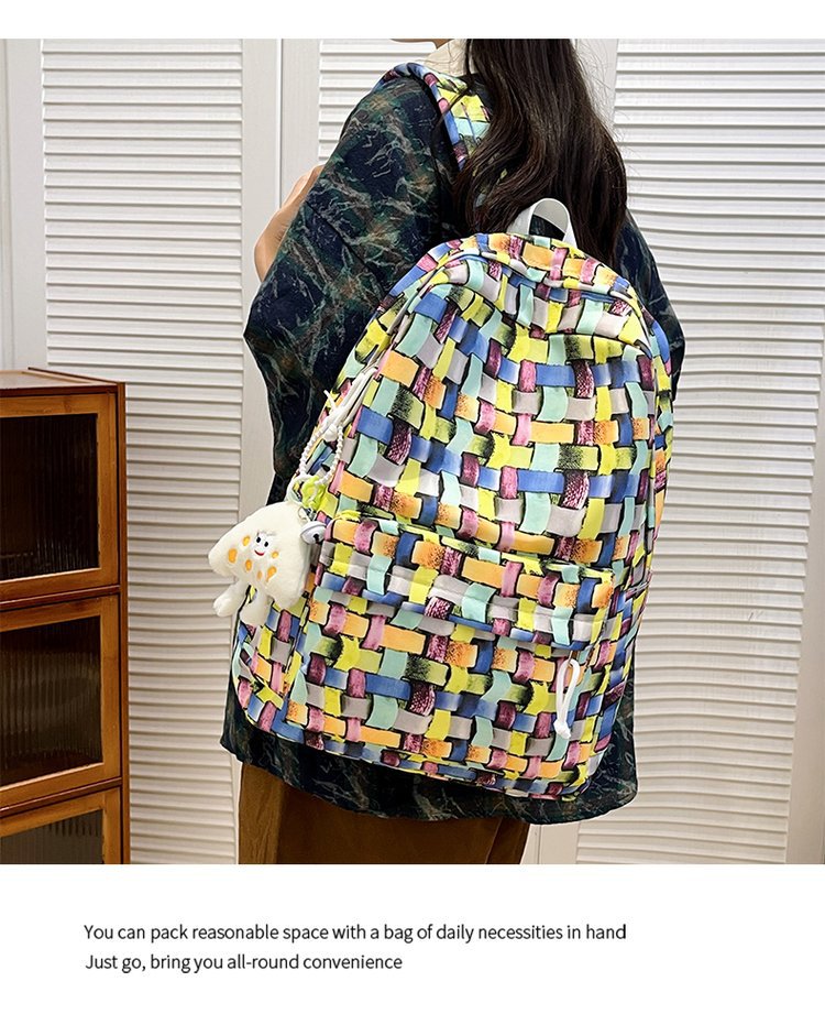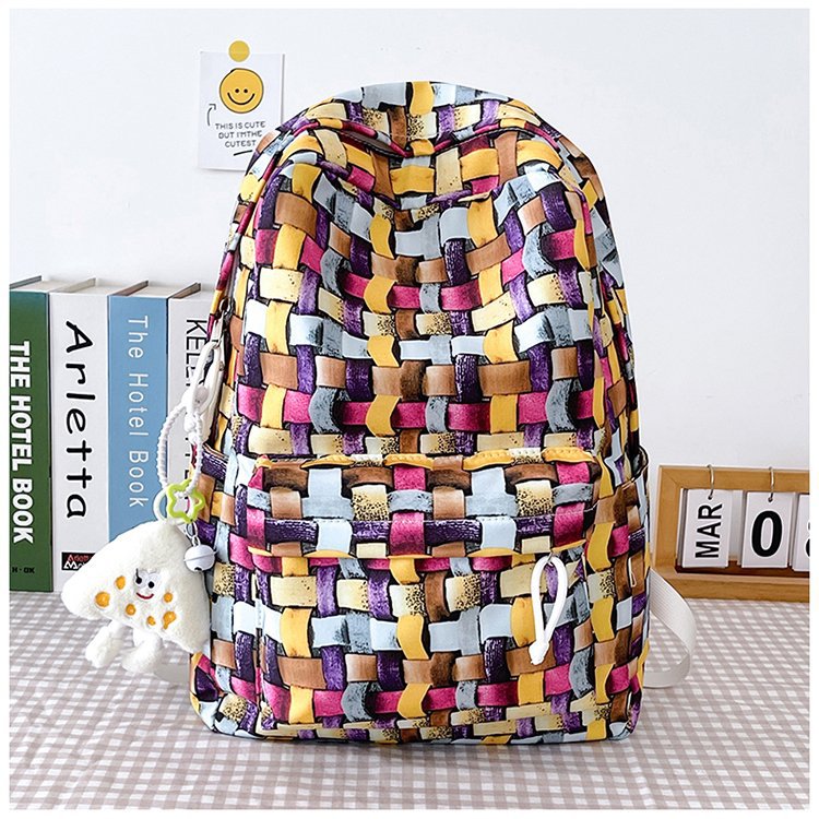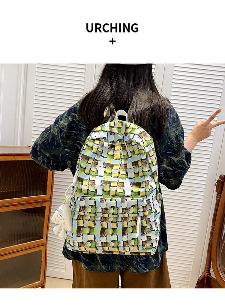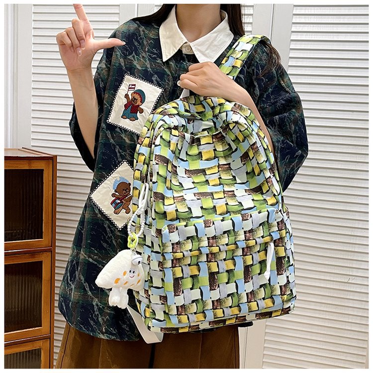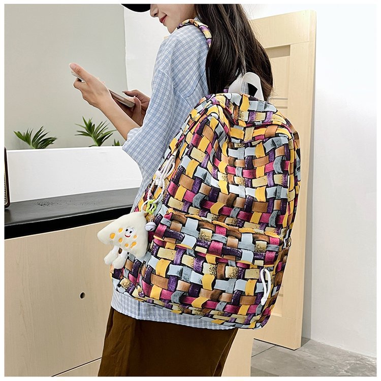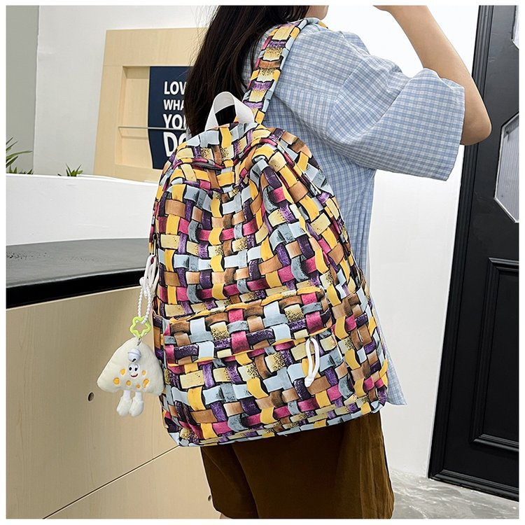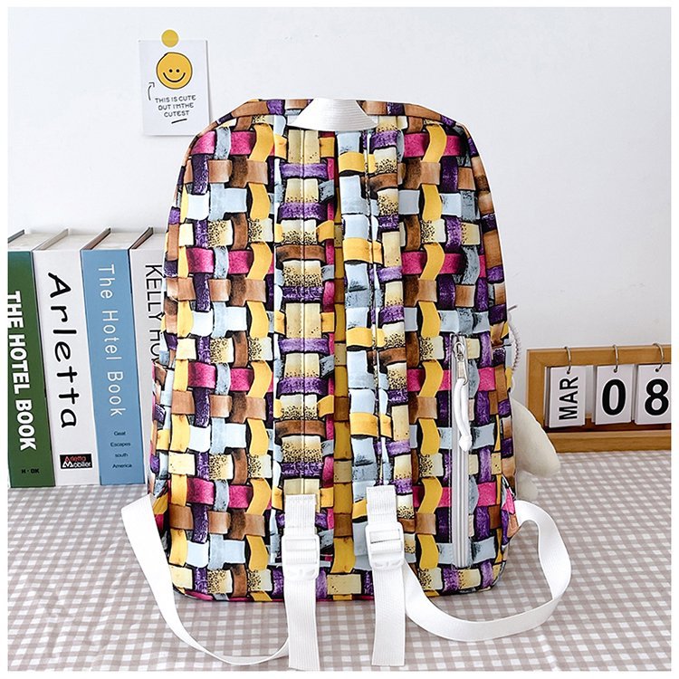 새로운 Ins Plaid 캐주얼 올 매치 높은 가치 틈새 그라디언트 디자인 중학교 고등학교 대학 배낭스토어 가기