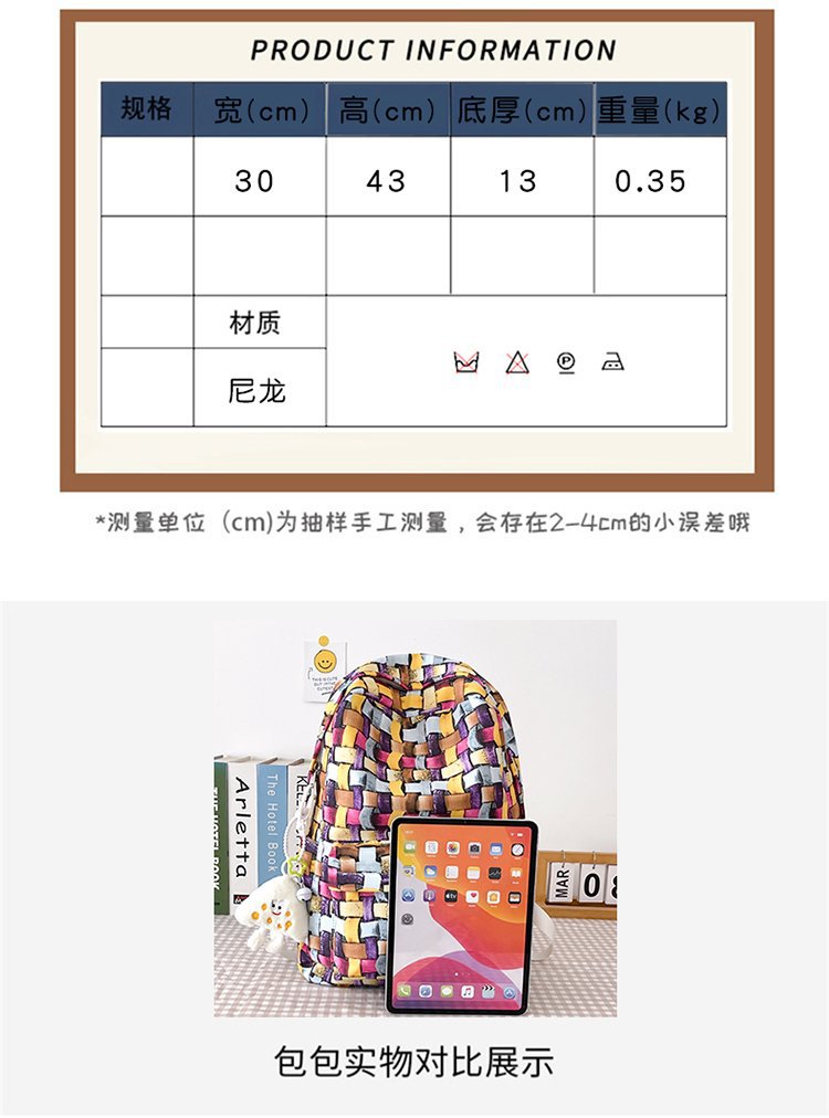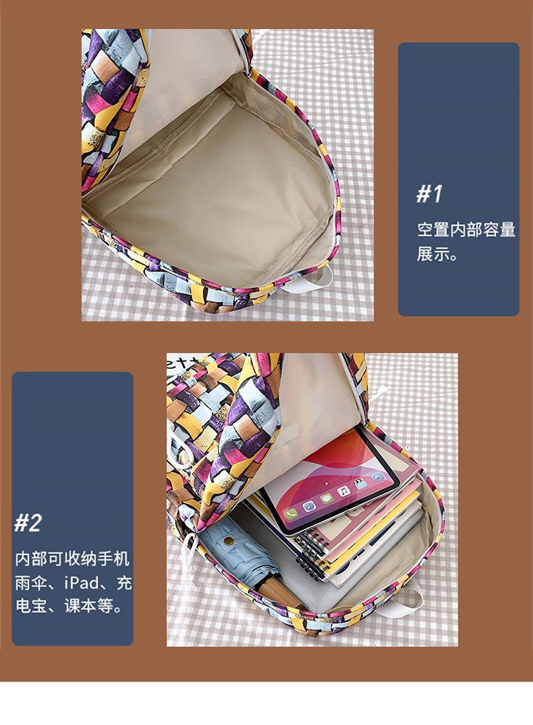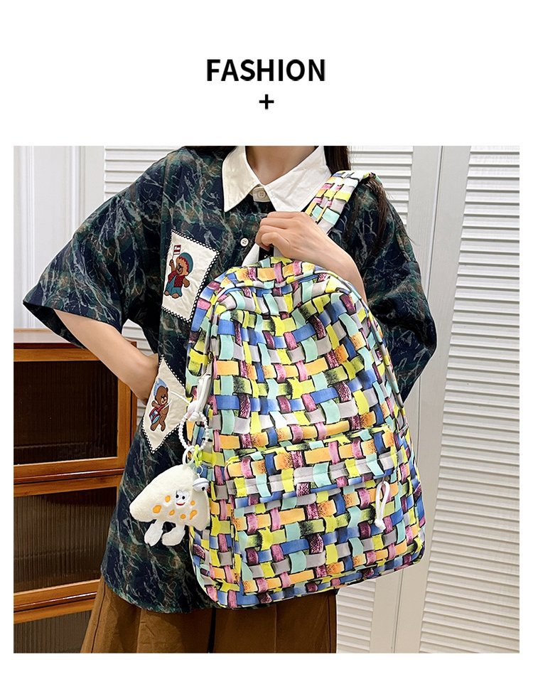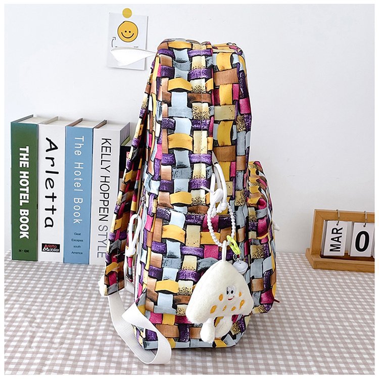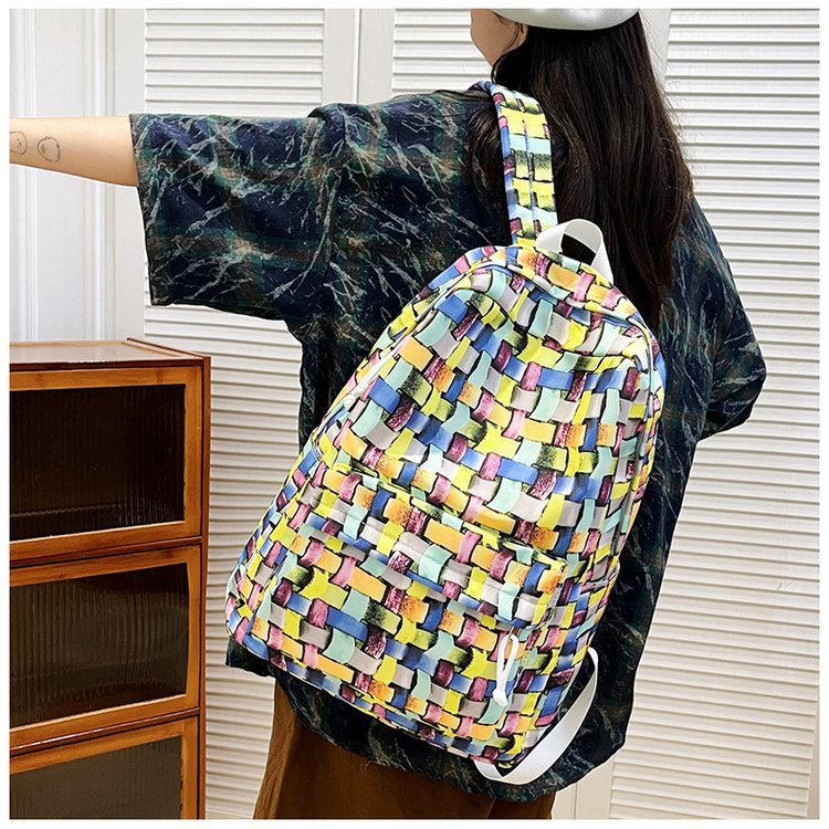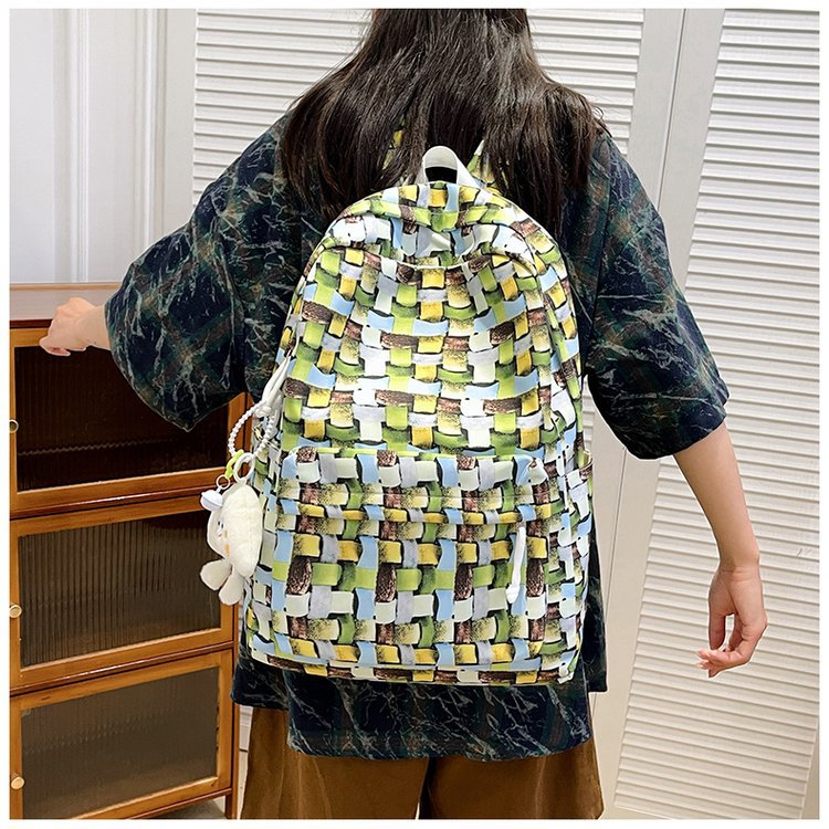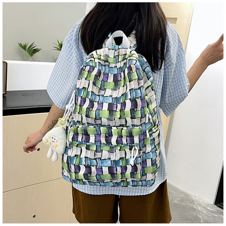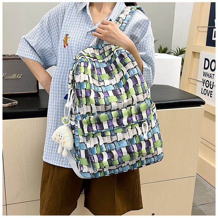새로운 Ins Plaid 캐주얼 올 매치 높은 가치 틈새 그라디언트 디자인 중학교 고등학교 대학 배낭스토어 가기