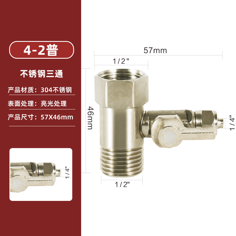 정수기 304 스테인리스 통합 물 입구 티 2 점 3 점 물 입구 티 밸브 정수기 액세서리스토어 가기