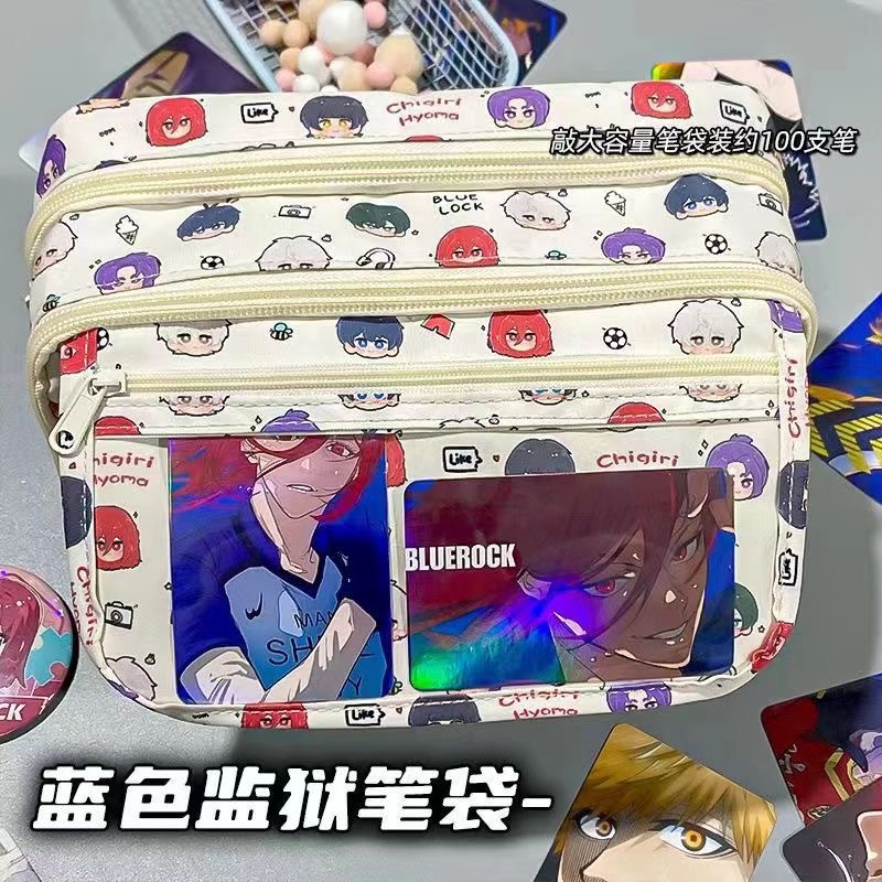 푸른 감옥을 둘러싼 일본 애니메이션 큰 음식 통증 가방 연필 케이스 플립 창조적 인 학생 멋진 문구 상자스토어 가기