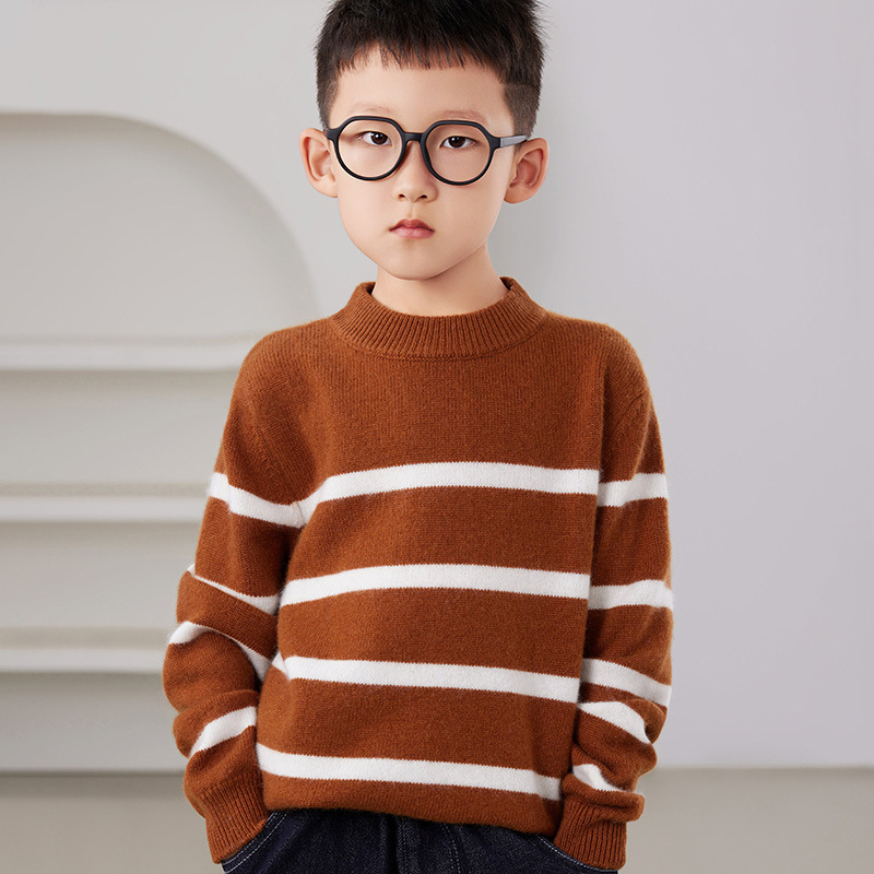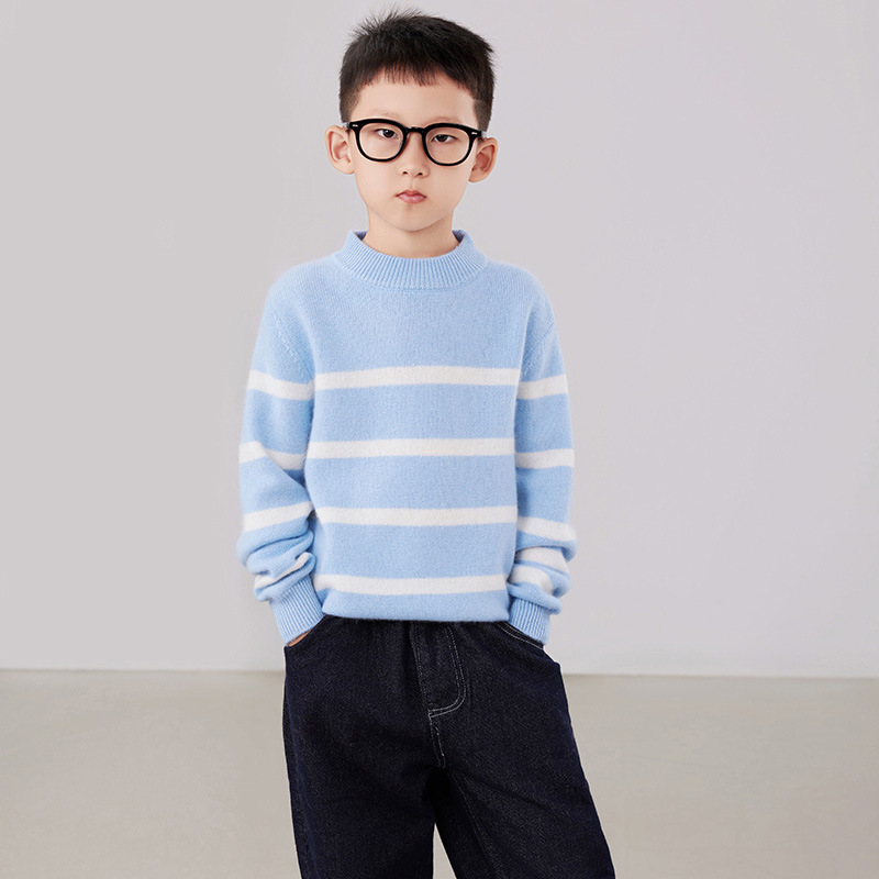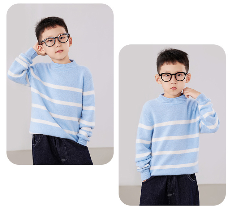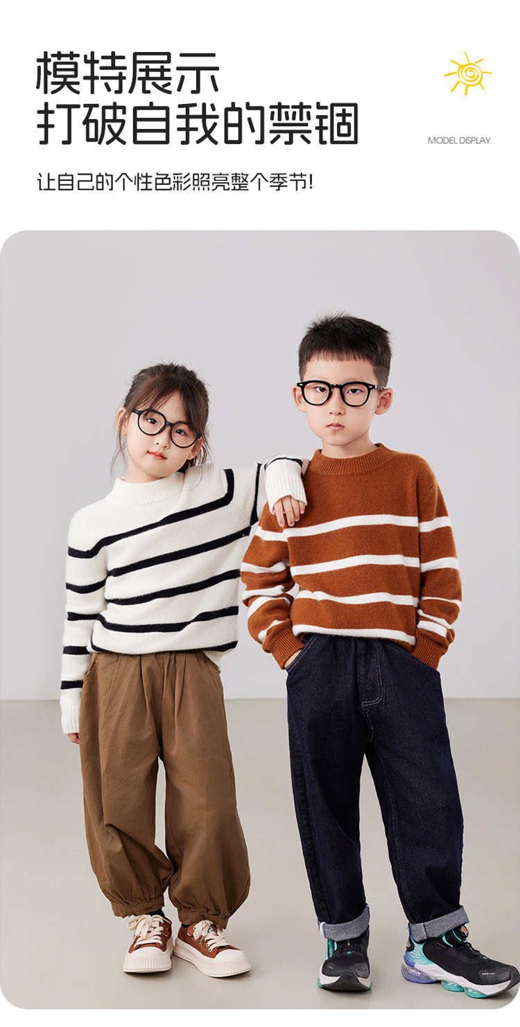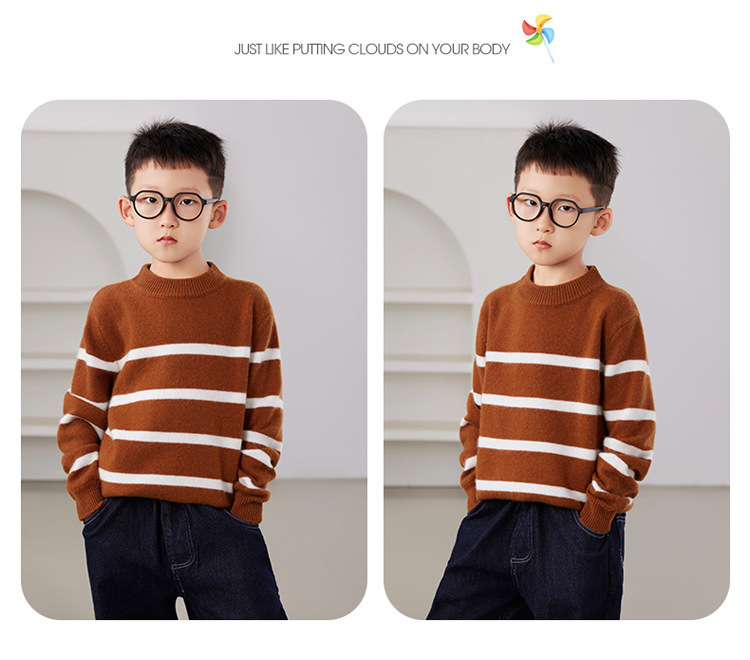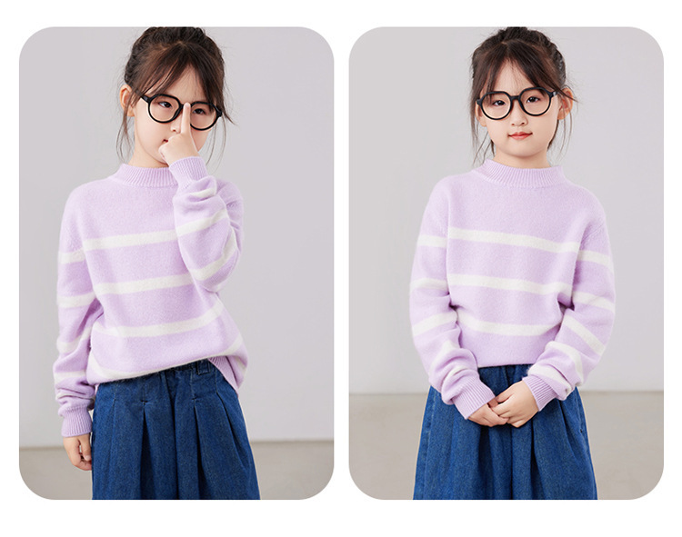 2025 새로운 소년과 소녀 반 터틀넥 스웨터 피부 친화적 인 벨벳 미들 및 빅 키즈베이스 셔츠 느슨한 어린이 줄무늬 스웨터스토어 가기