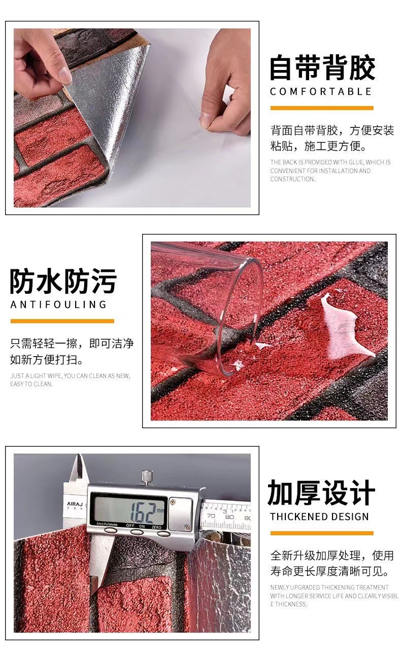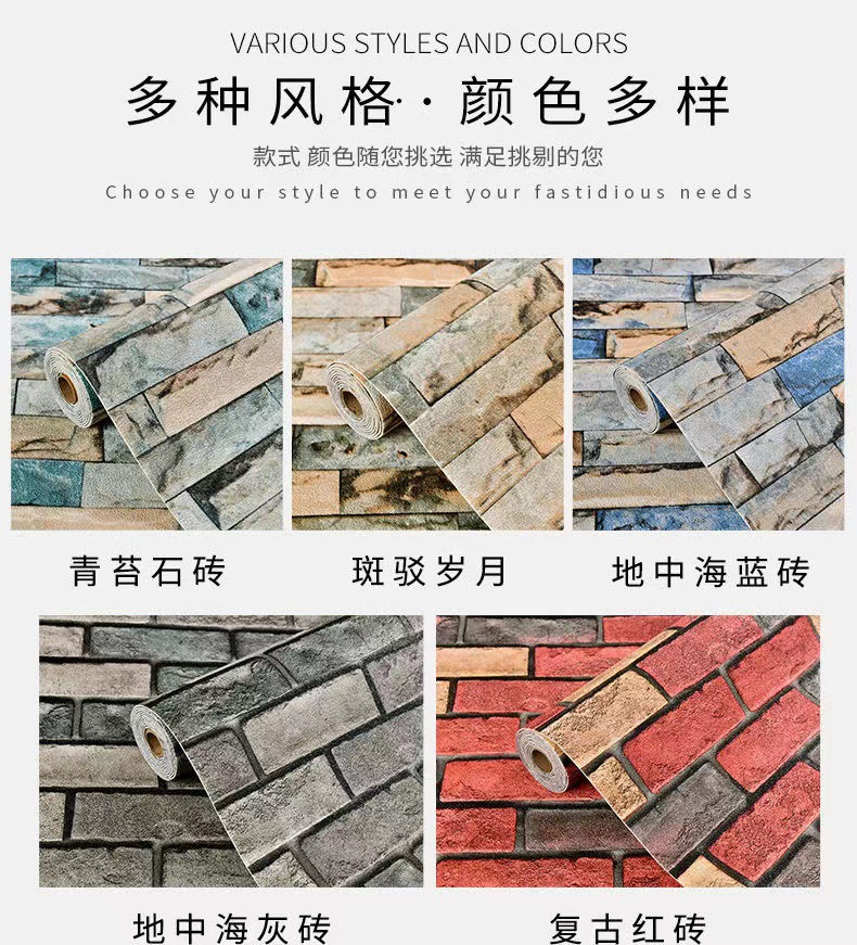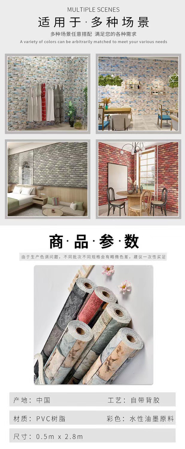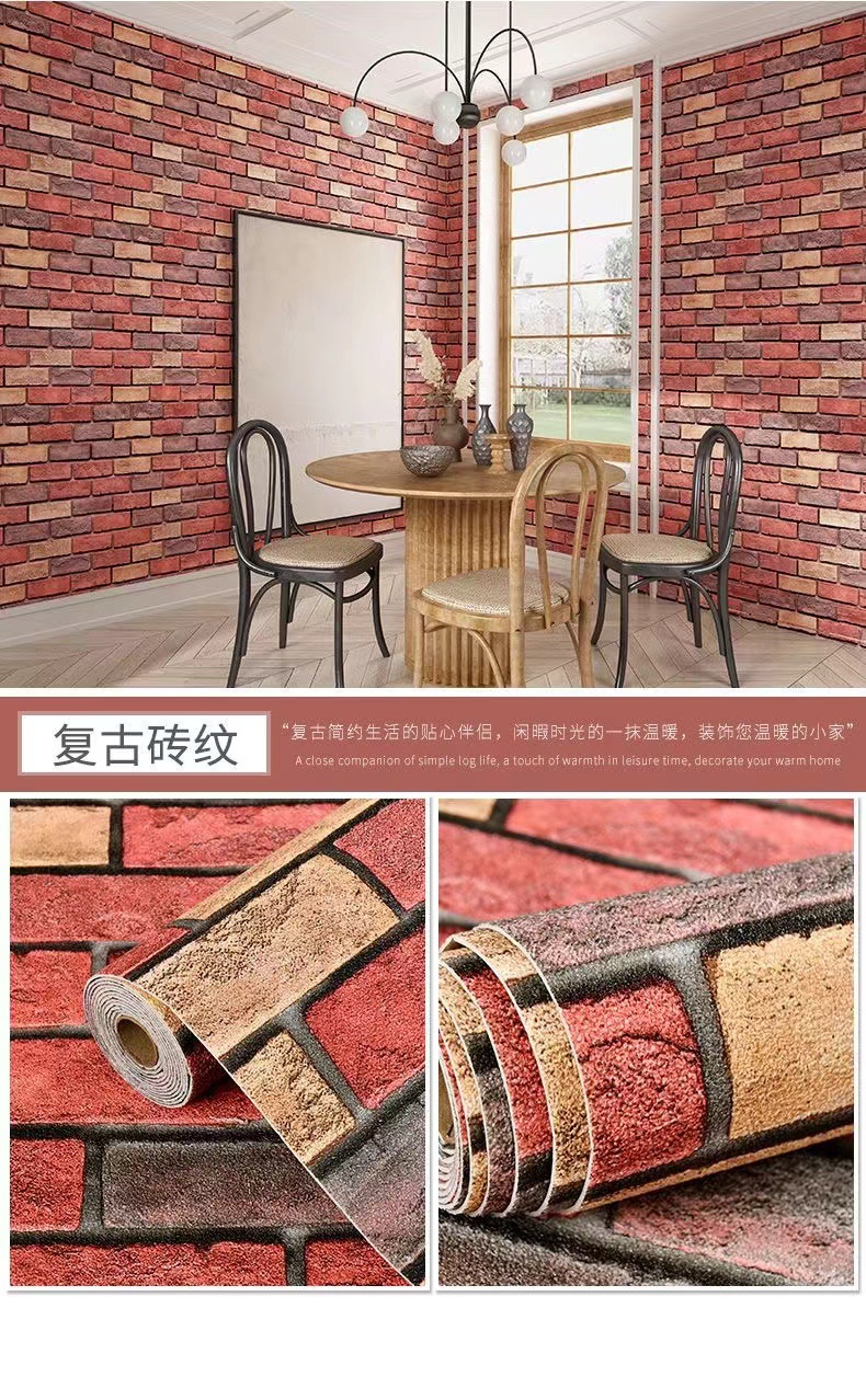 자기 접착 벽지 복고풍 벽돌 벽 스티커 방수 방습 3D 벽지 거실 장식 가게 외관 전체 스프레드 스티커