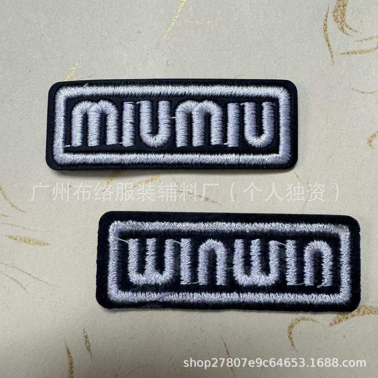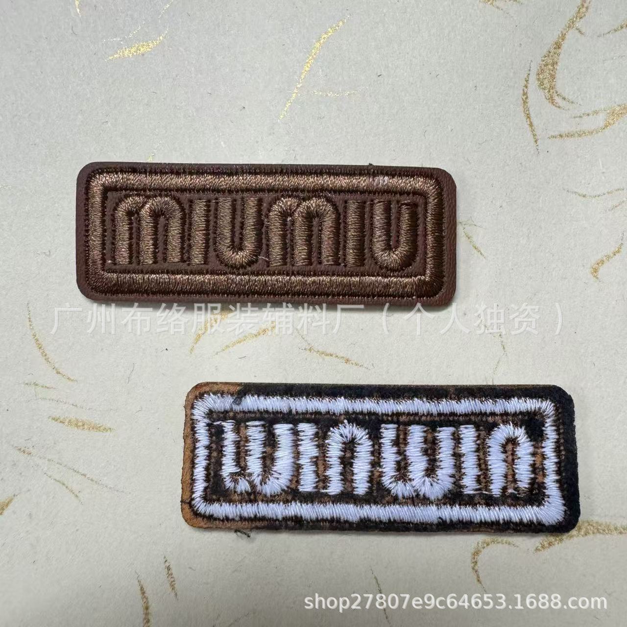 새로운 재고 Miu Miu 홈 자수 가죽 라벨 모자 라벨 어린이 액세서리 청바지 가죽 라벨 자수 라벨스토어 가기