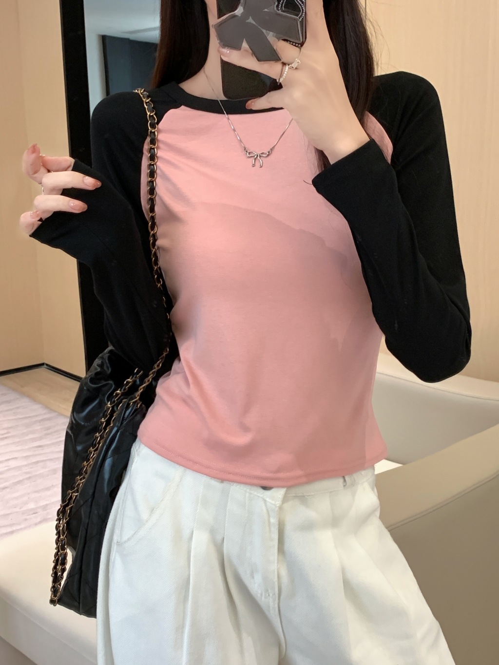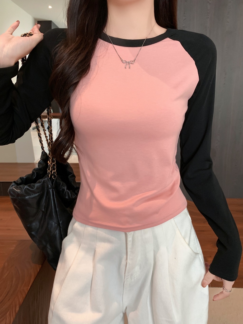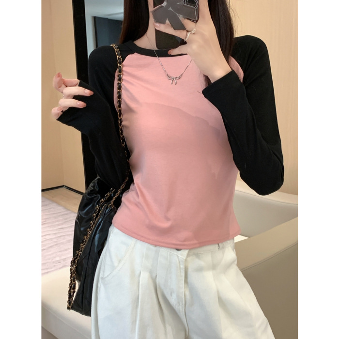 헤어 가을과 겨울의 실제 샷 40 코튼 컬러 슬림 한 기질 긴 소매 티셔츠 여성베이스 셔츠스토어 가기