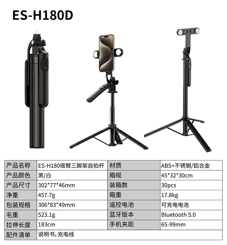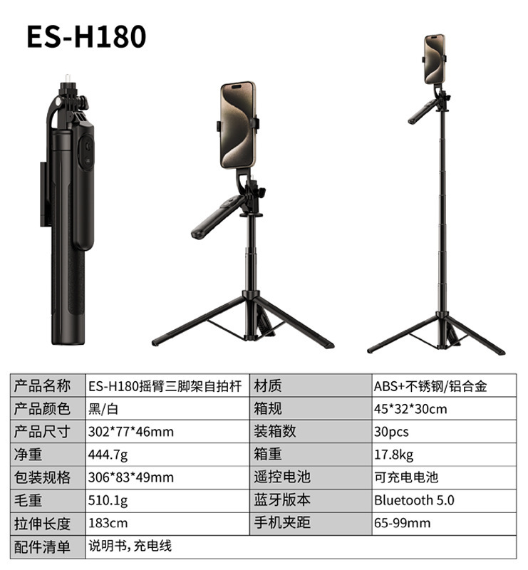 새로운 H180 안티 쉐이크 접이식 1.8 m 라이브 휴대 전화 브래킷 360 회전 촬영 통합 셀카 스틱
