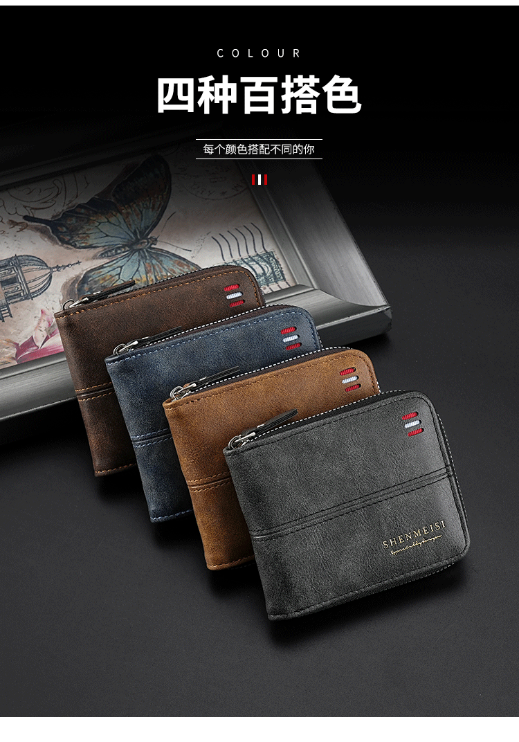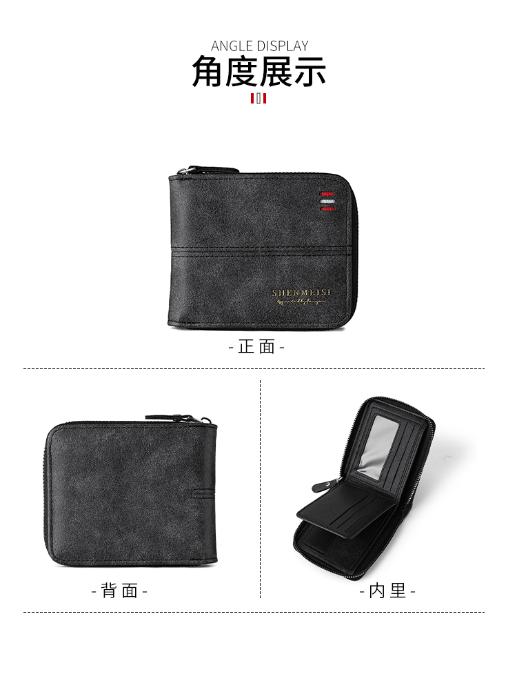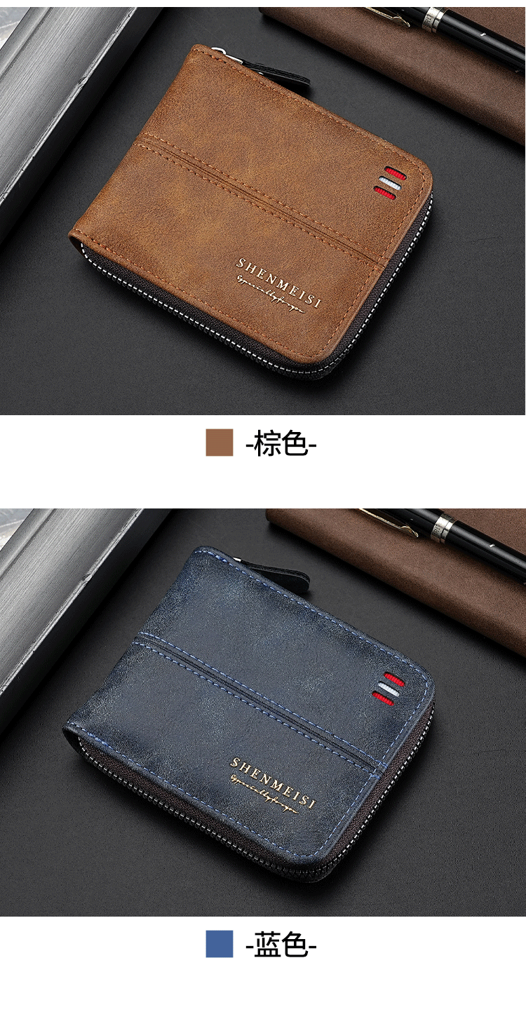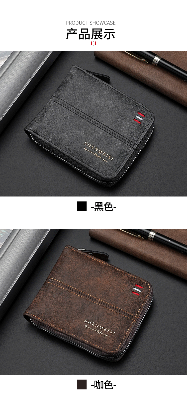 남자 지갑 짧은 2025 새로운 단색 청소년 간단한 국경 지갑 다기능 학생 지퍼 동전 지갑스토어 가기