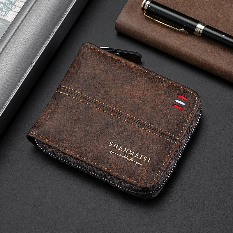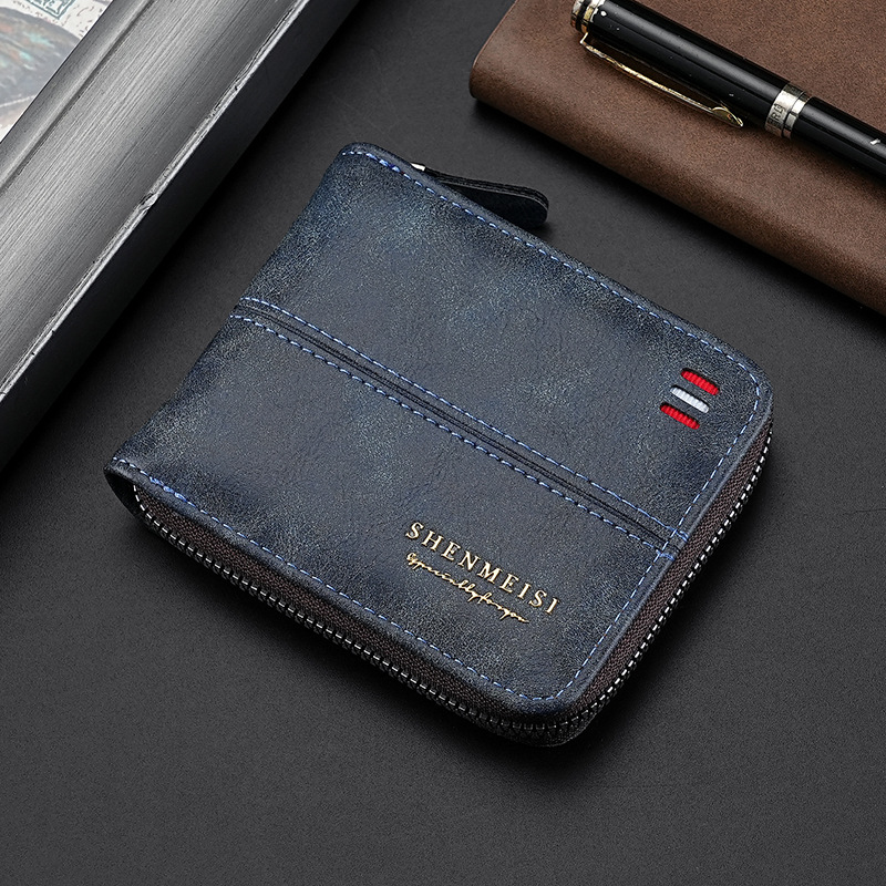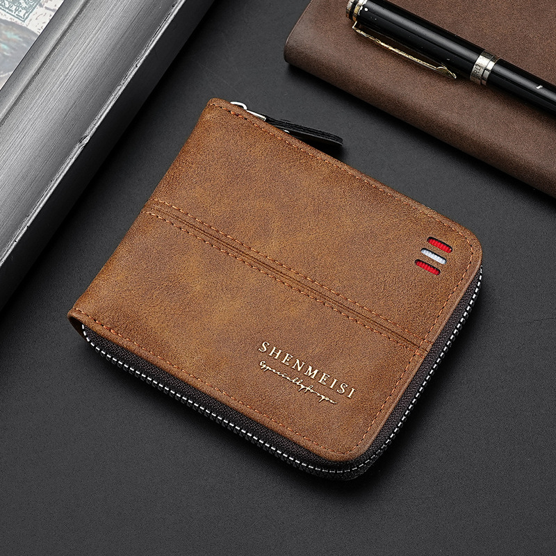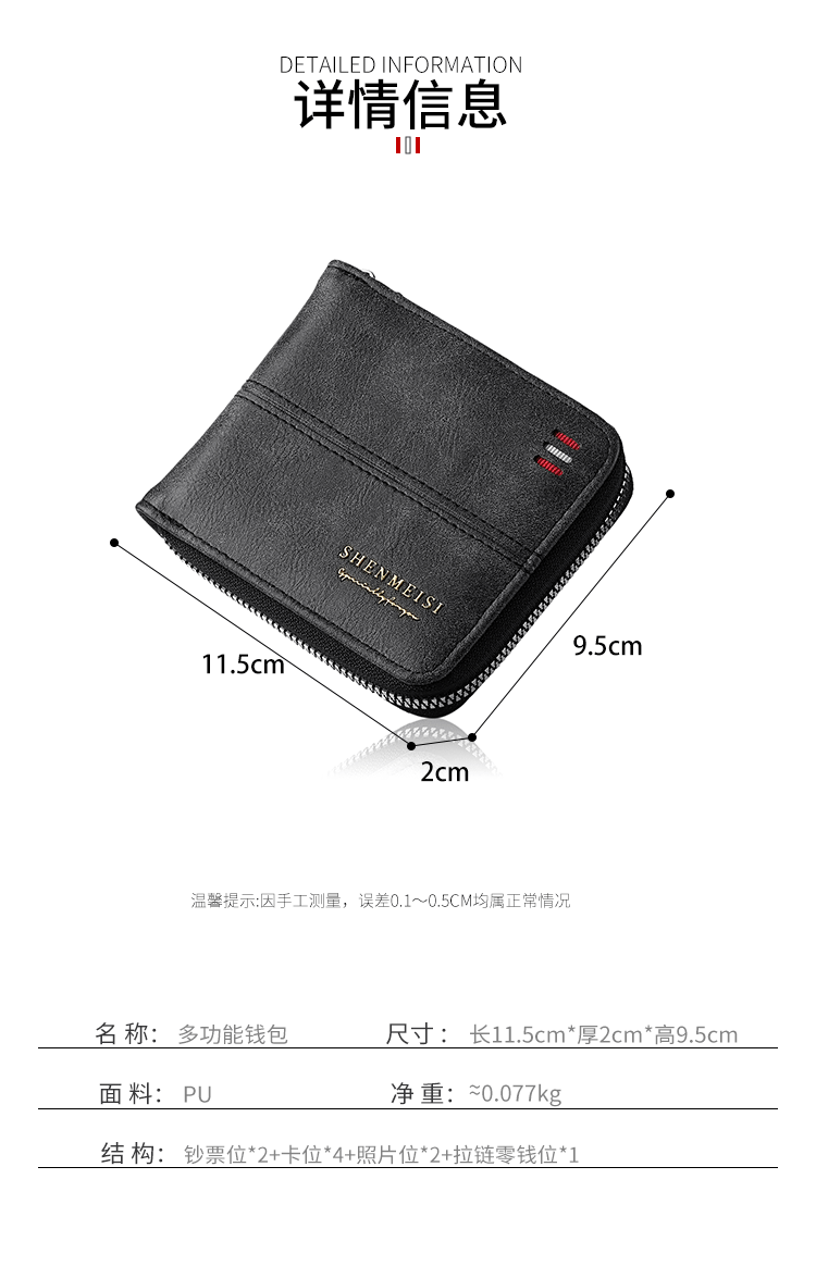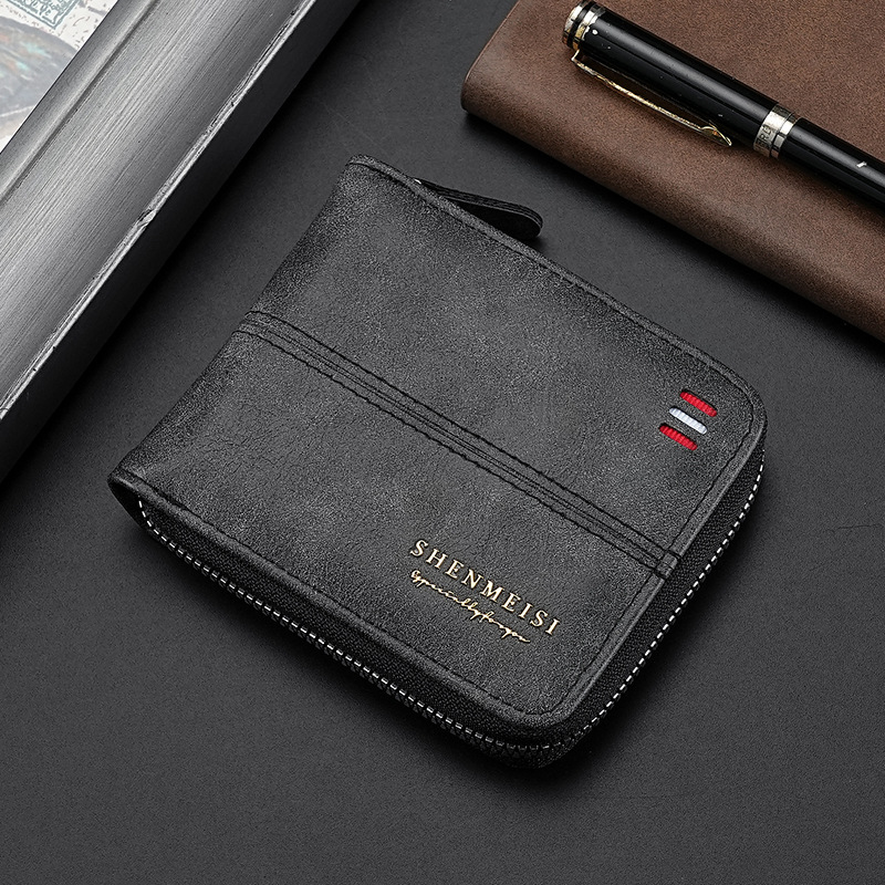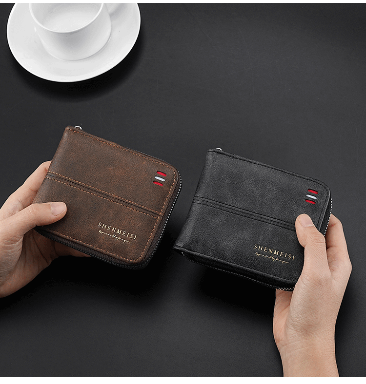 남자 지갑 짧은 2025 새로운 단색 청소년 간단한 국경 지갑 다기능 학생 지퍼 동전 지갑스토어 가기