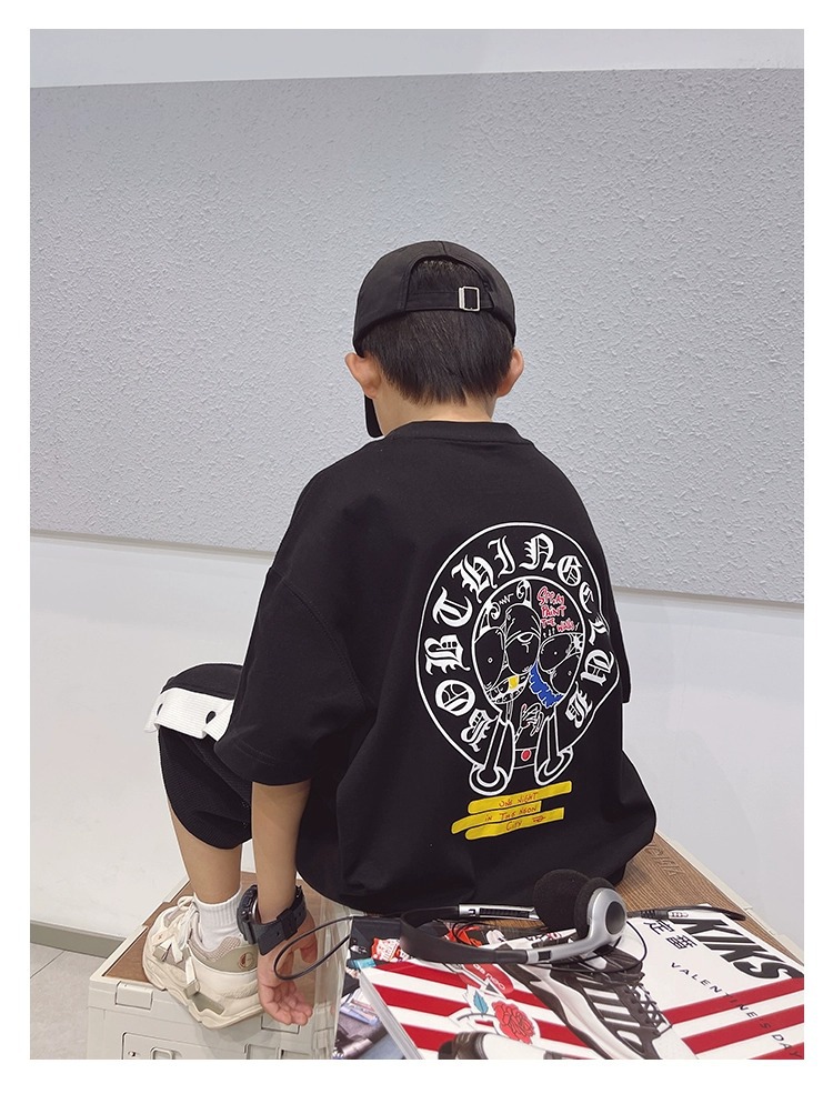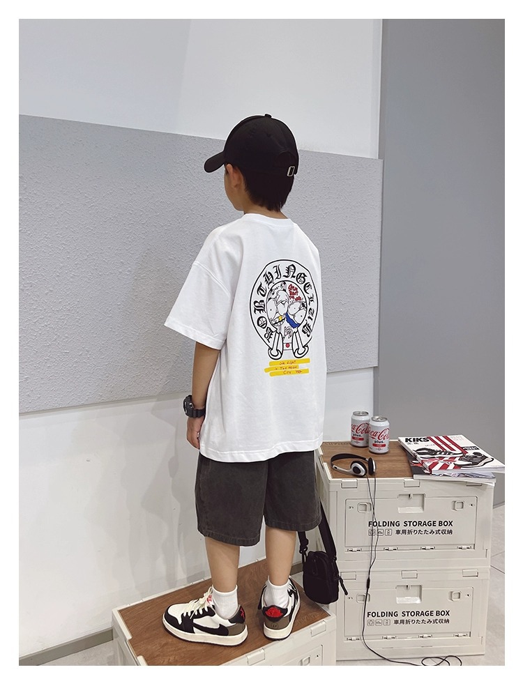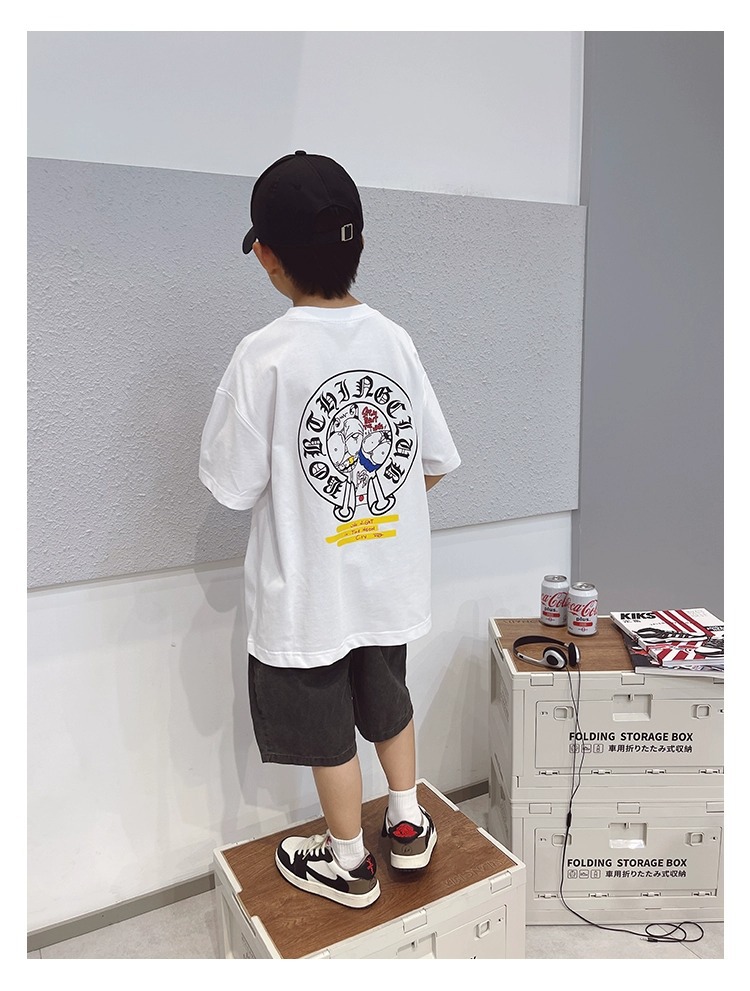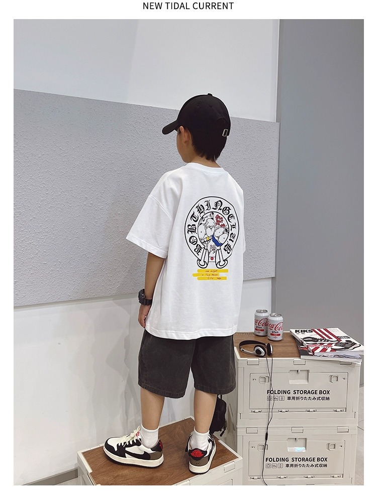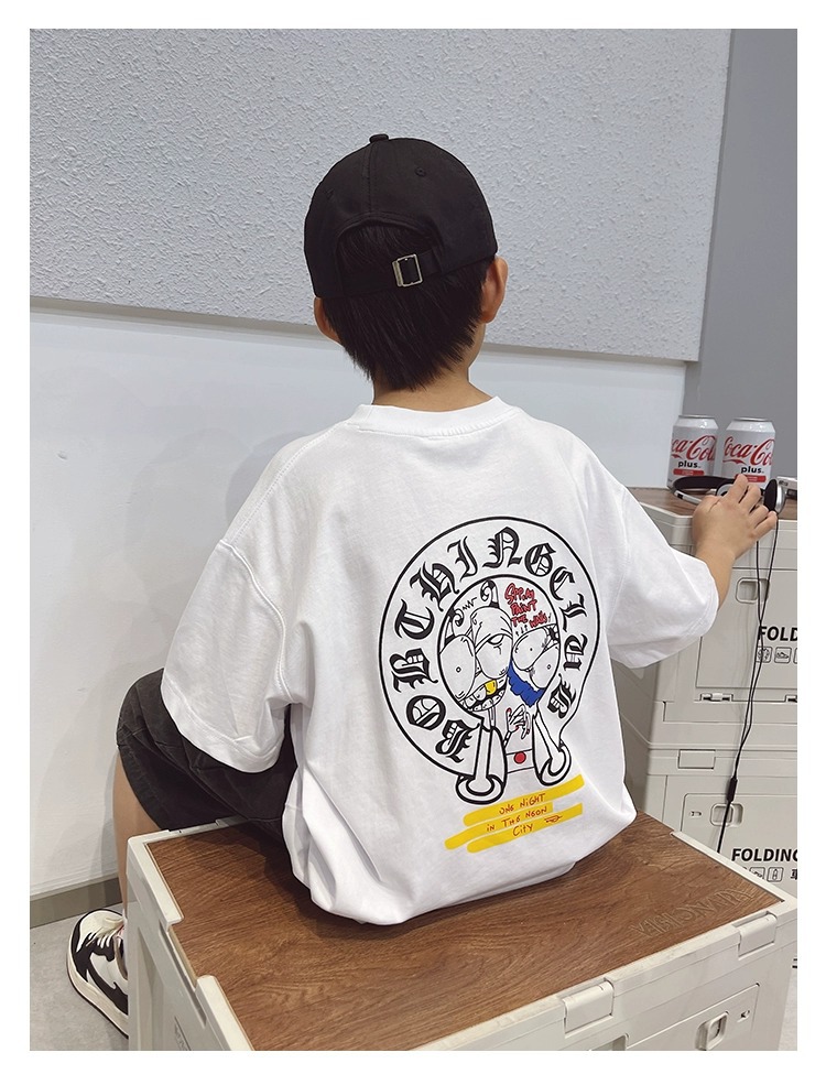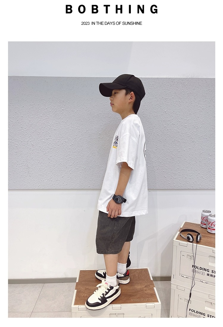반지 티셔츠베이스 셔츠 스타일리시하게 인쇄 된 어린이 세련된 쿨 미들 큰 어린이 편지 반팔 티셔츠 남자를위한 반소매 탑스토어 가기