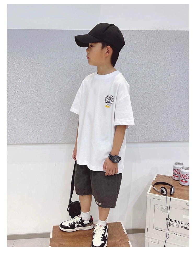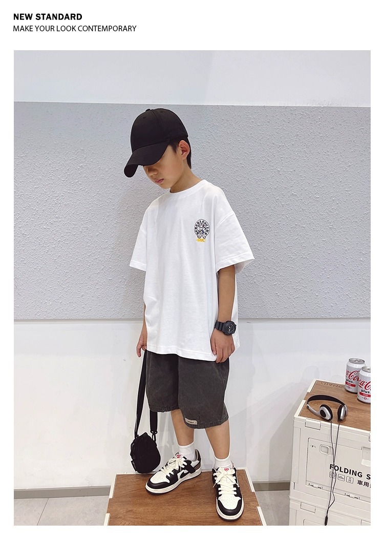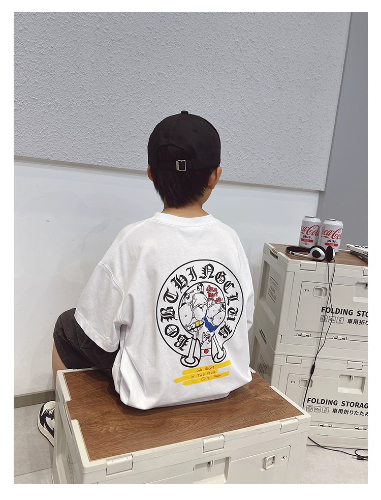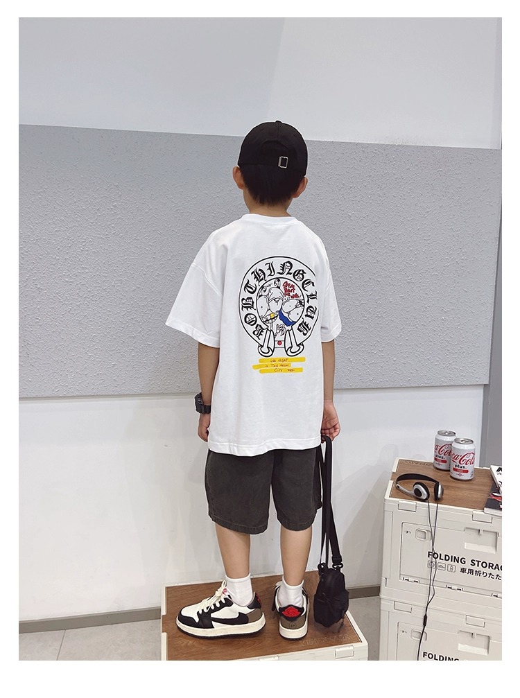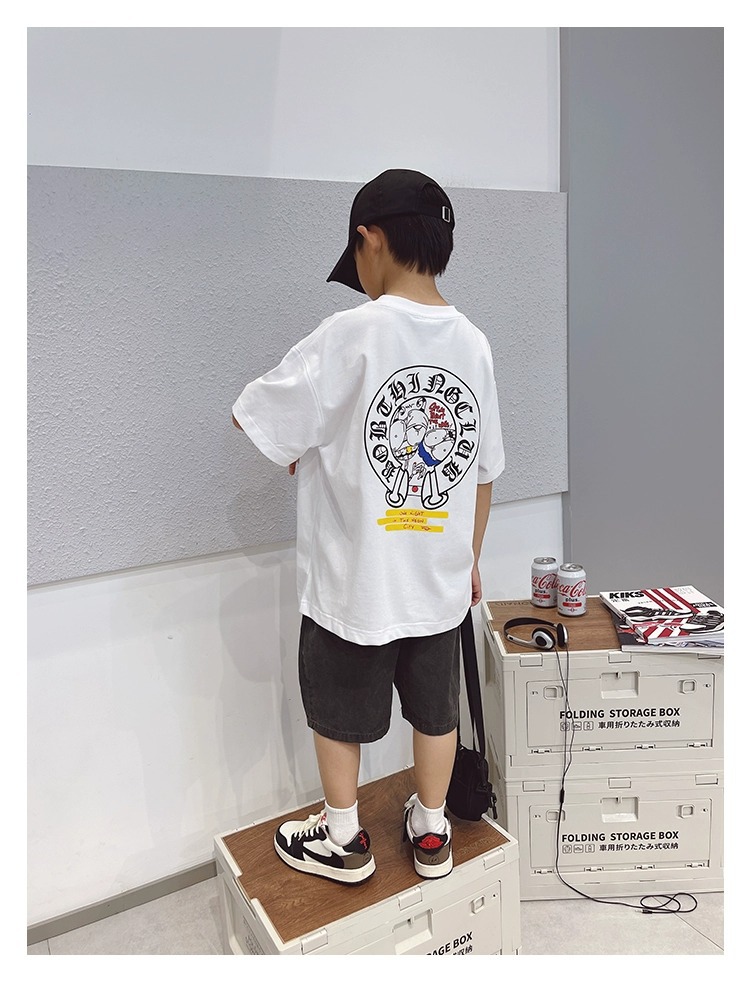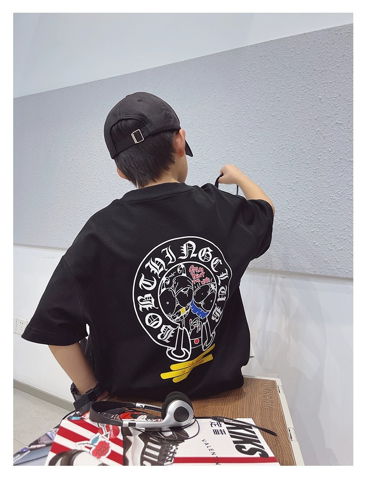 반지 티셔츠베이스 셔츠 스타일리시하게 인쇄 된 어린이 세련된 쿨 미들 큰 어린이 편지 반팔 티셔츠 남자를위한 반소매 탑스토어 가기