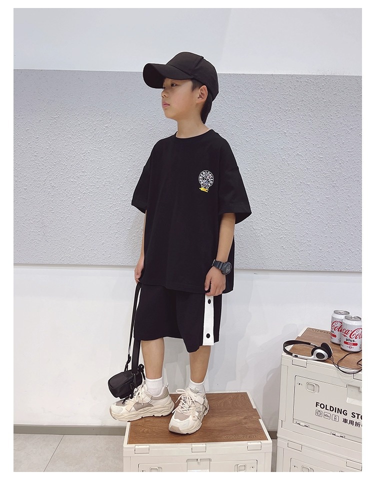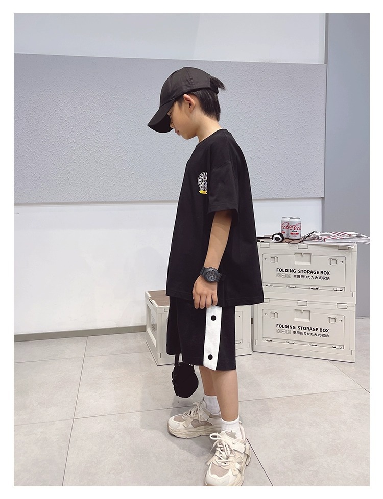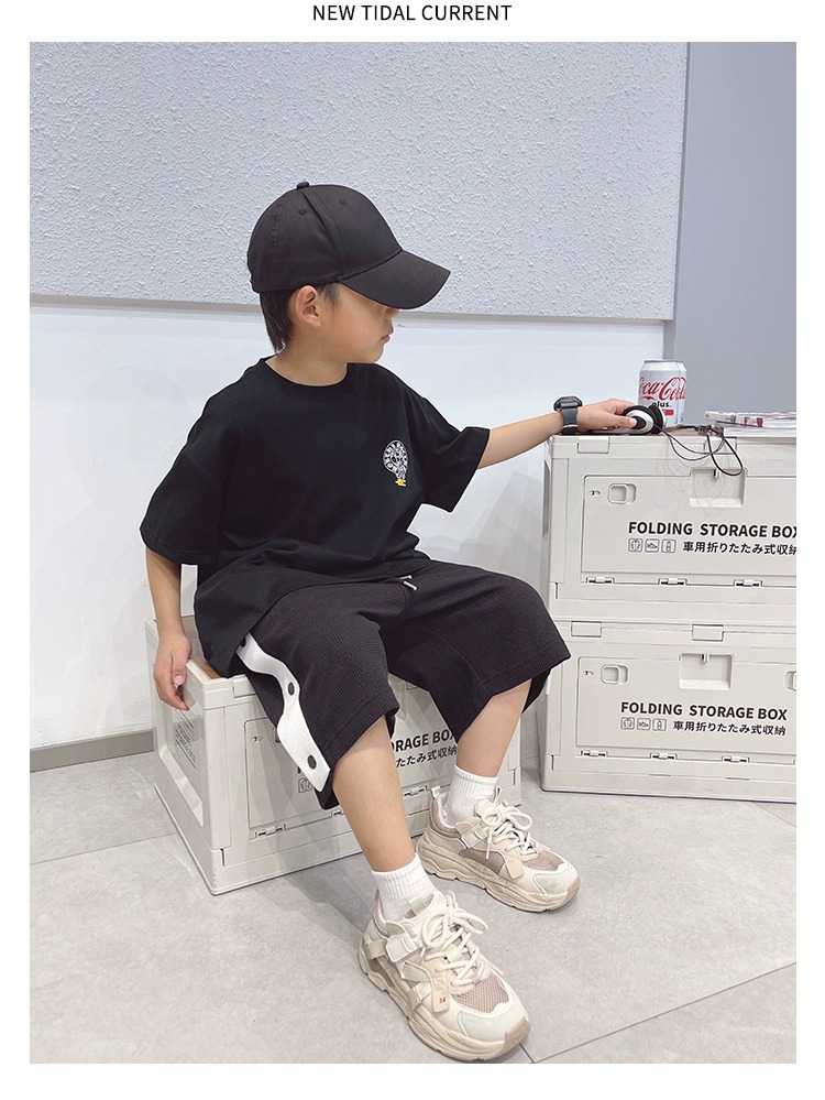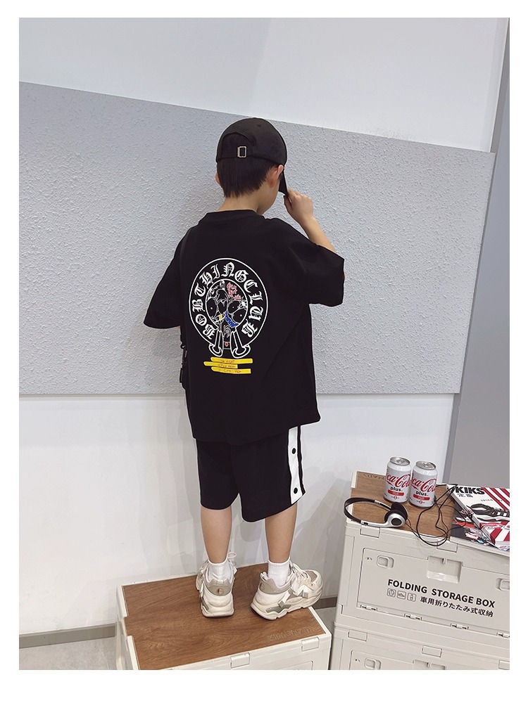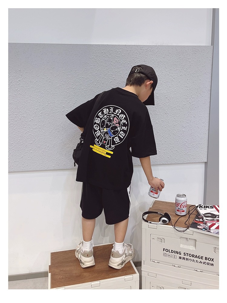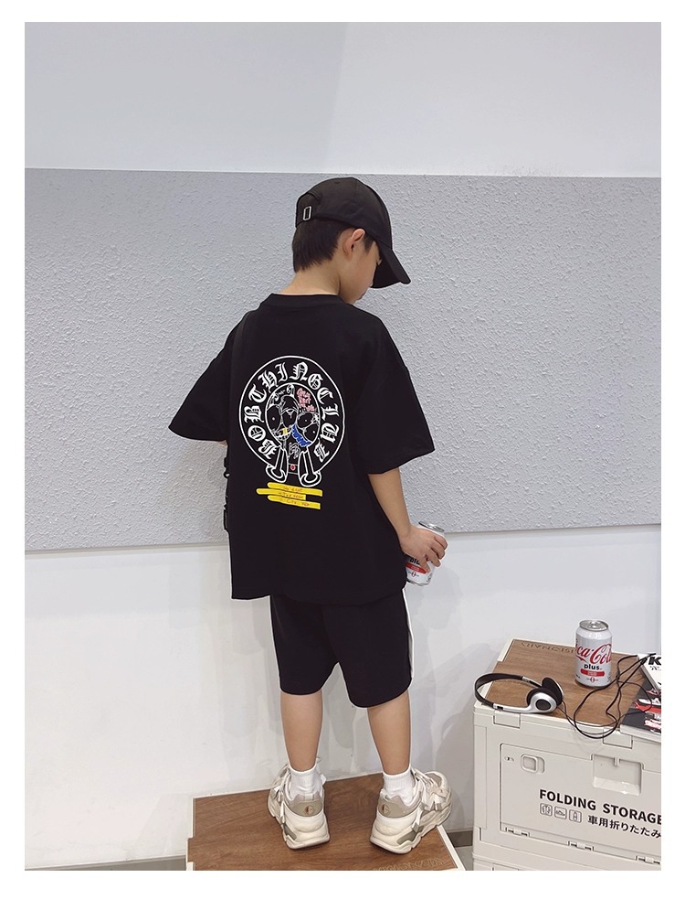 반지 티셔츠베이스 셔츠 스타일리시하게 인쇄 된 어린이 세련된 쿨 미들 큰 어린이 편지 반팔 티셔츠 남자를위한 반소매 탑스토어 가기
