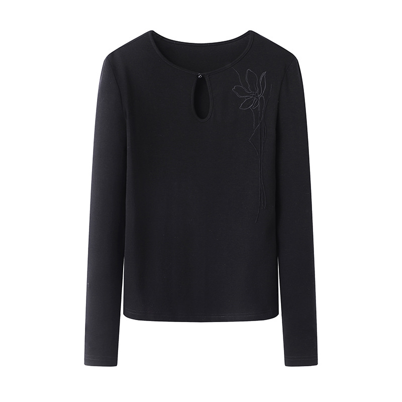 2025 봄 새로운 중국 속이 빈 둥근 목 티셔츠 슬림 자수 여성 D401XC102Z00