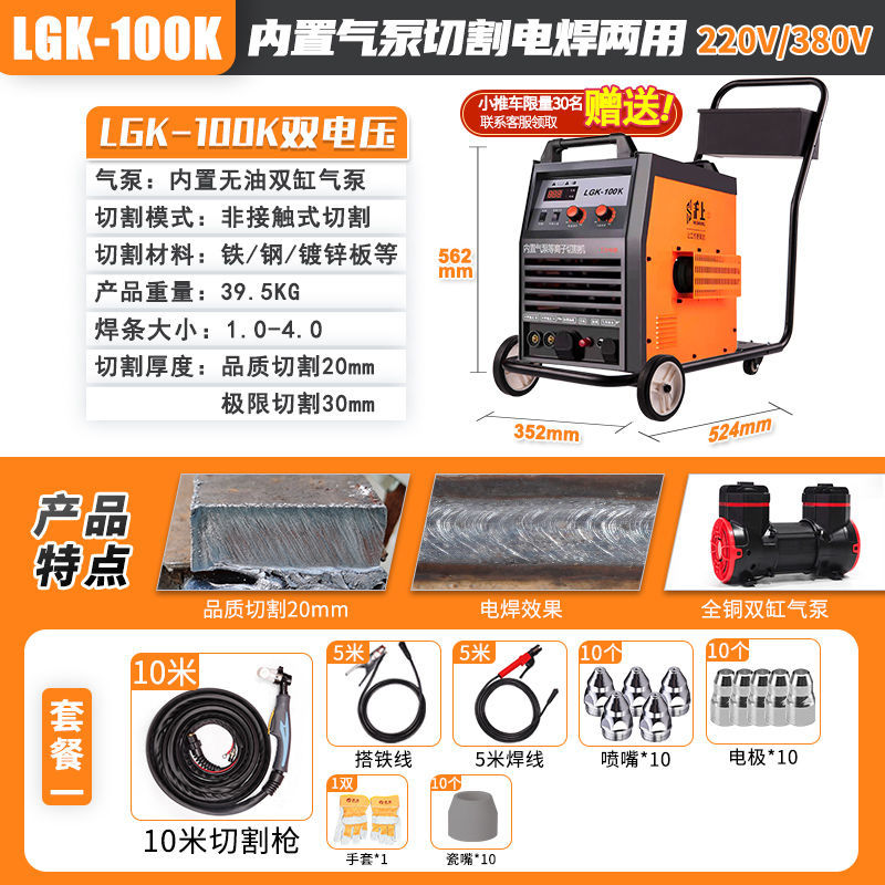 상하이 CUT40/80/100 내장 공기 펌프 플라즈마 절단기 220V380V 산업 절단 및 용접 이중 목적