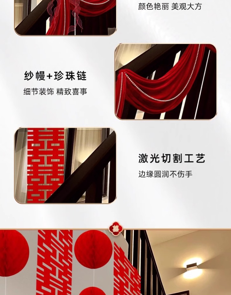 • 행복한 이벤트에는 계단 난간 장식 4개를 배치할 수 있으며 약 4.2M입니다.