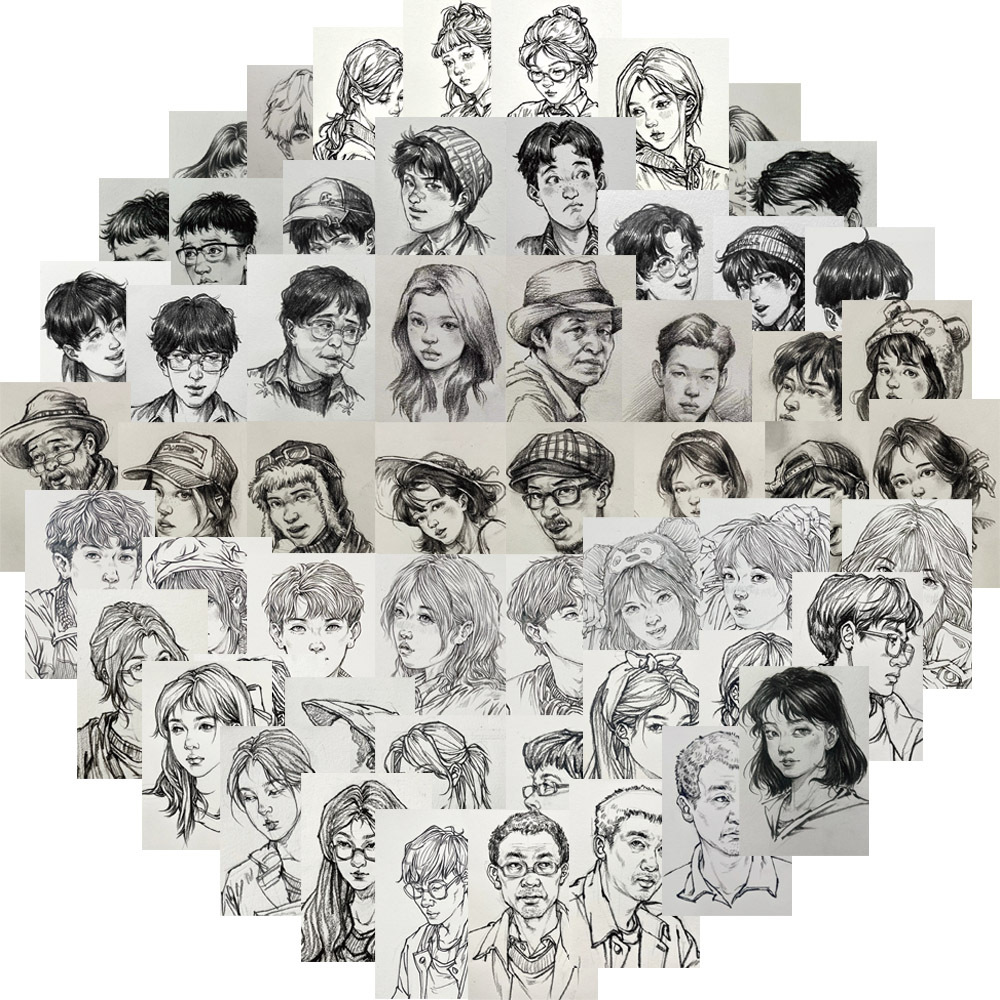 • 64개의 캐릭터 머리 스케치
