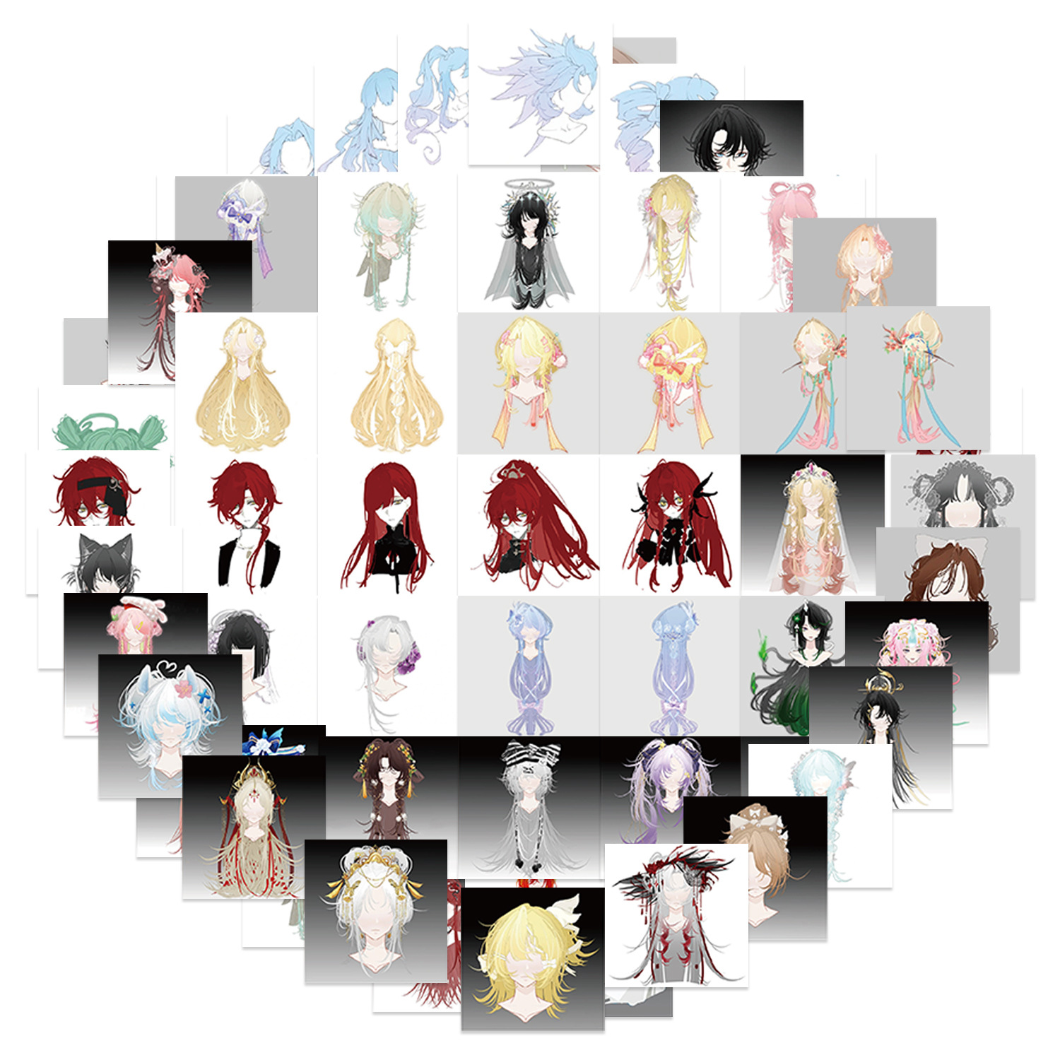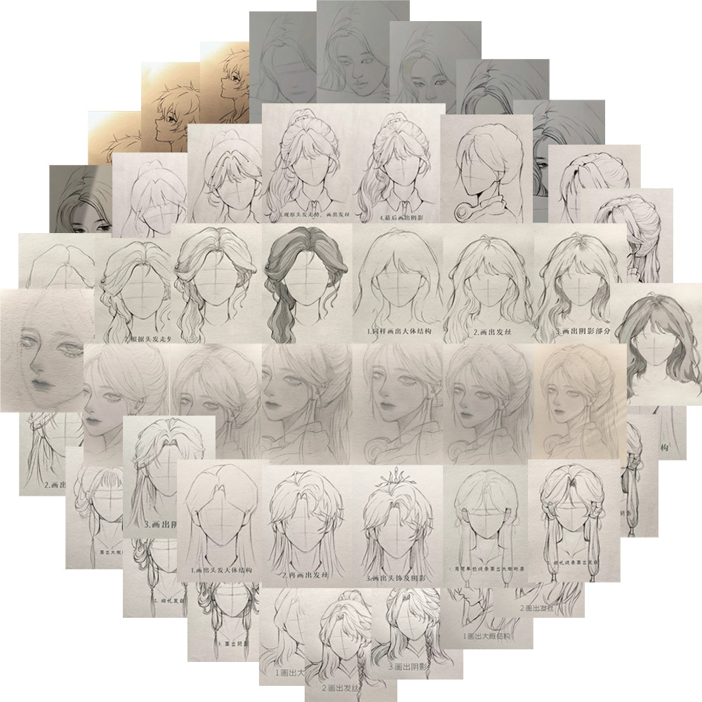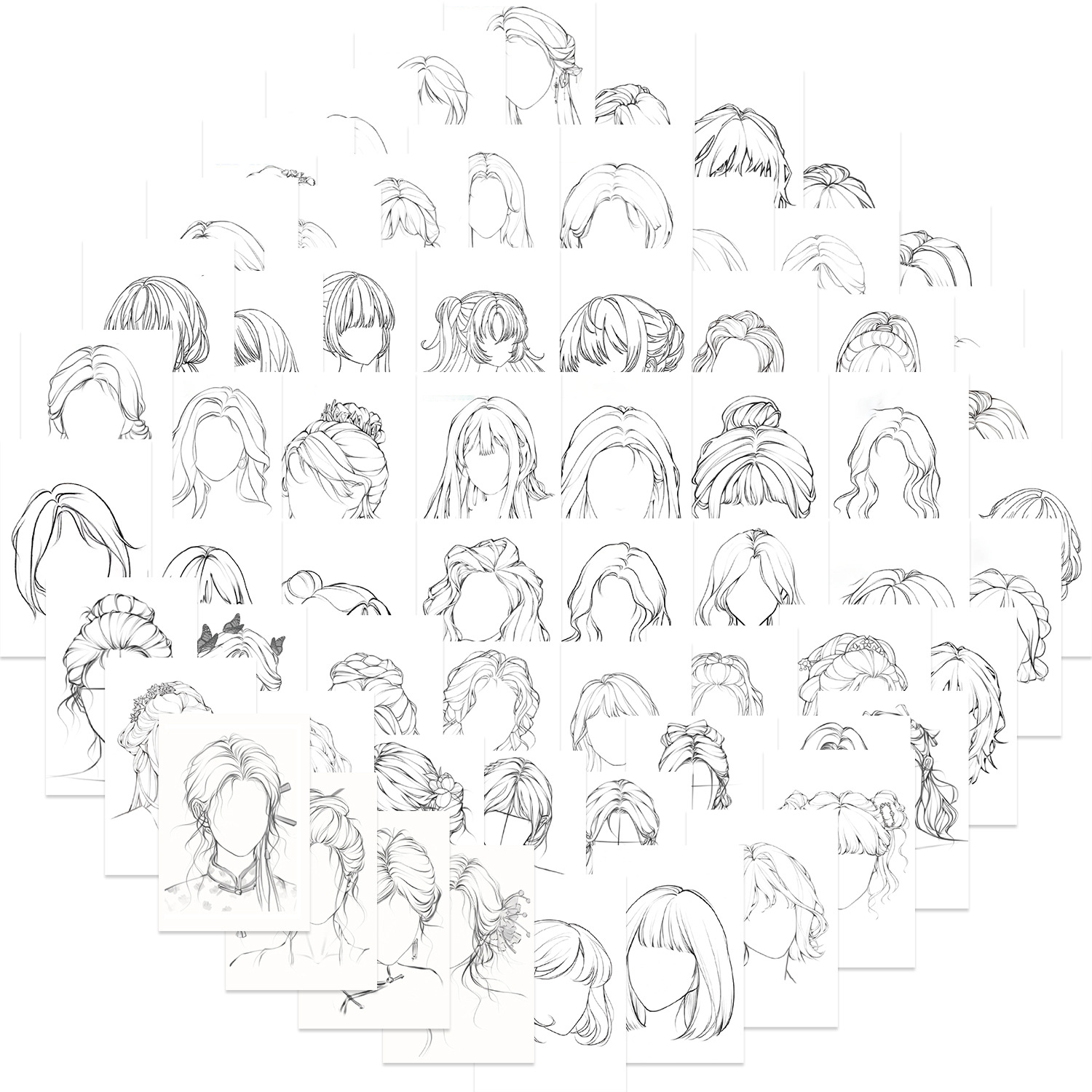 • 64 선 그리기 소녀 헤어 스타일