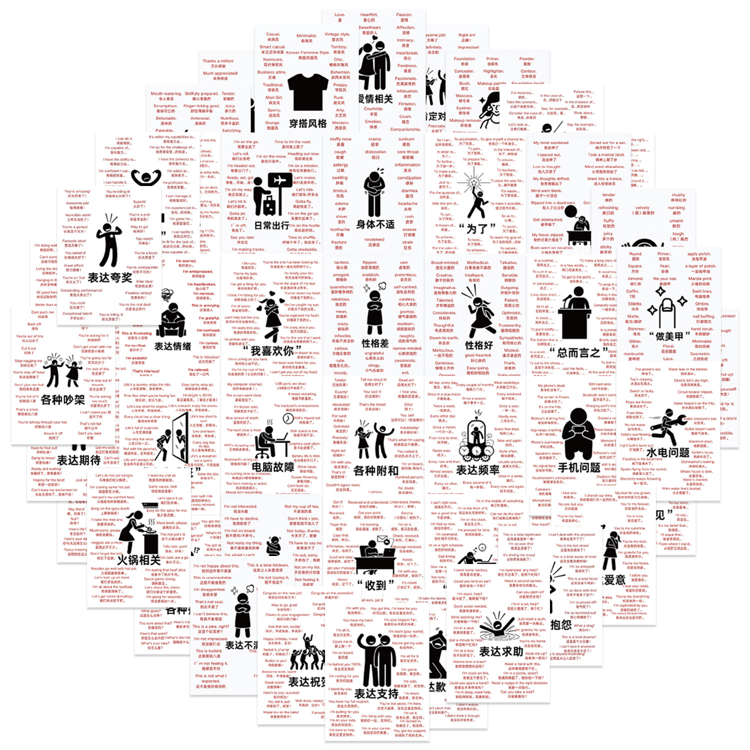 수백 가지의 인기 있는 창의적인 스티커 컬렉션, 재미있는 인형 표현 팩, 스타 게임 학습 문구 스티커