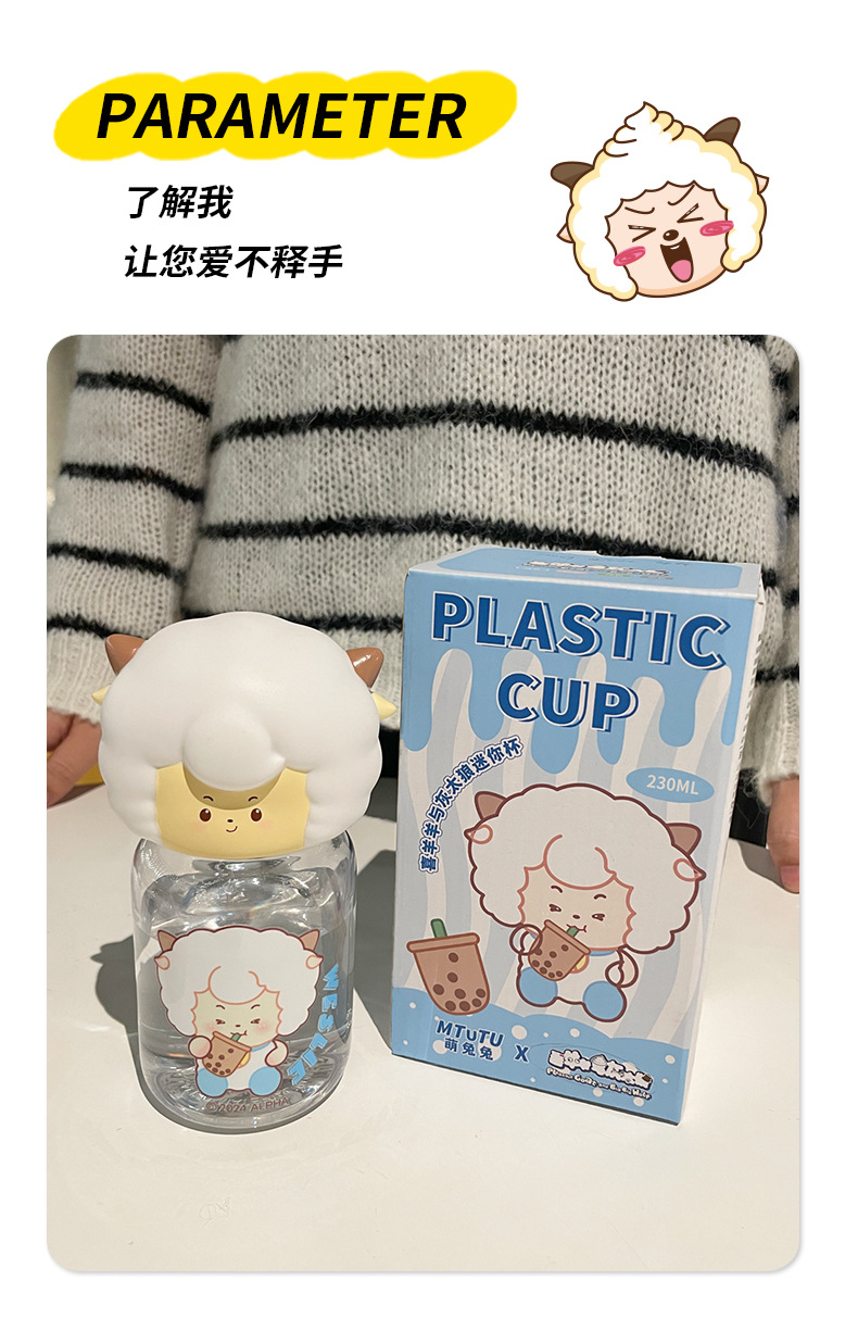 쾌적한 염소와 큰 큰 늑대 인형 컵 플라스틱 미니 컵 새로운 귀여운 휴대용 포켓 학생 어린이 물 컵스토어 가기