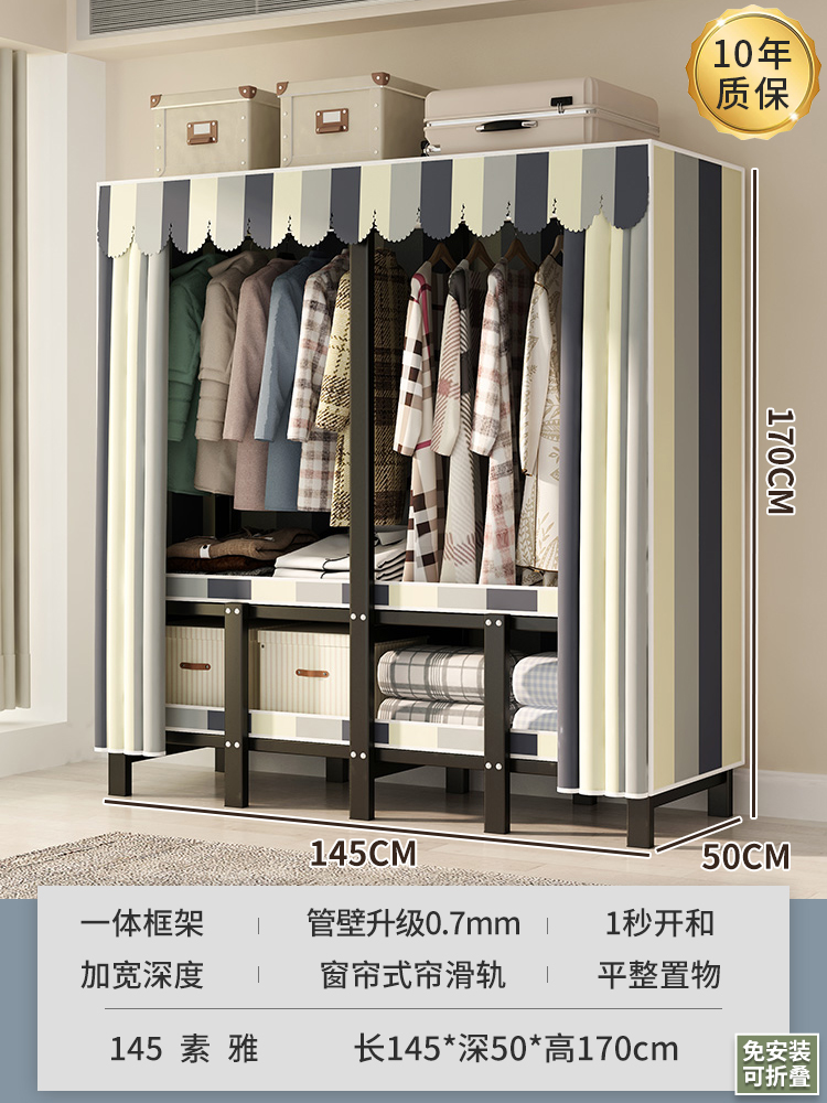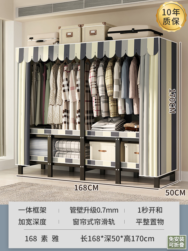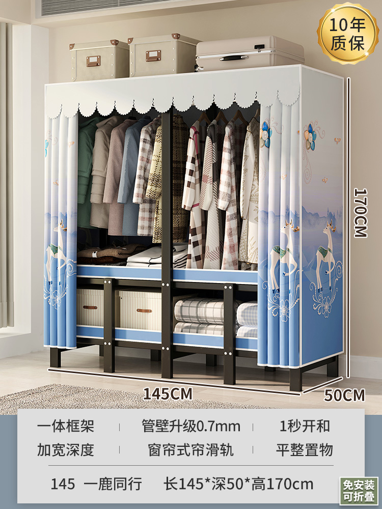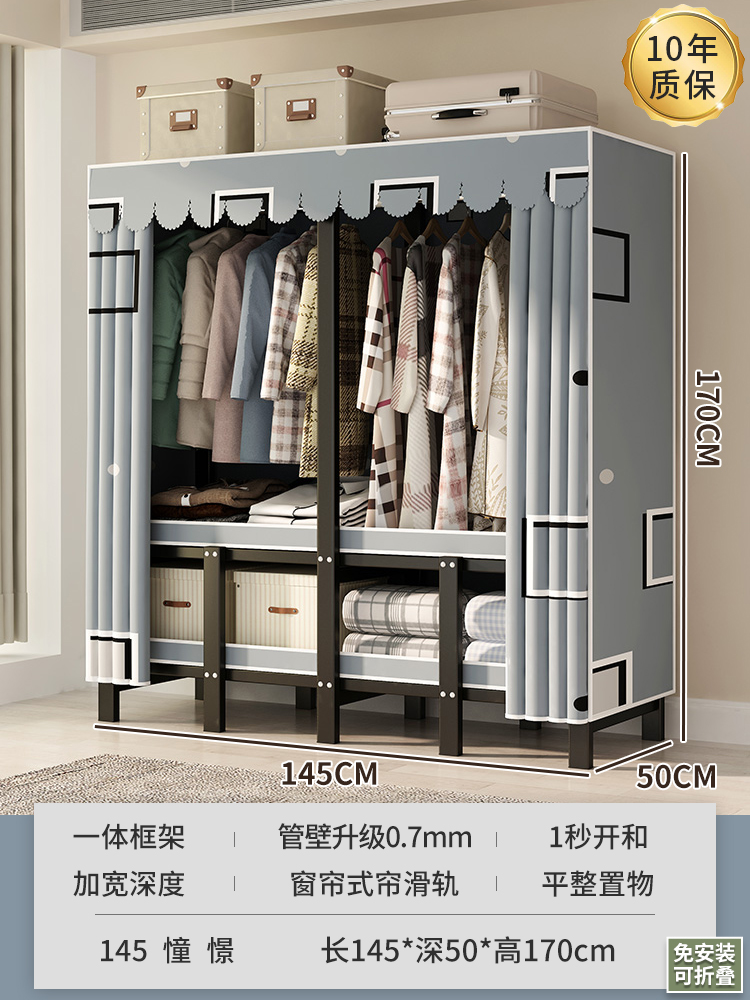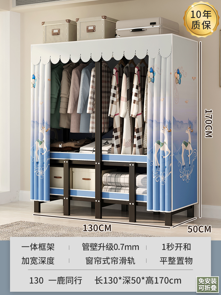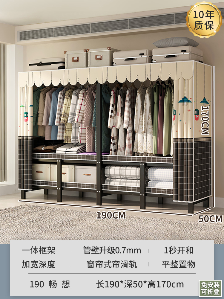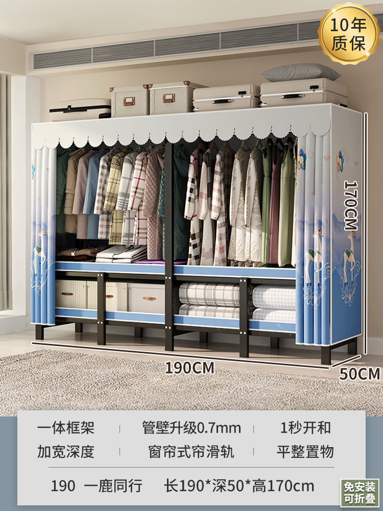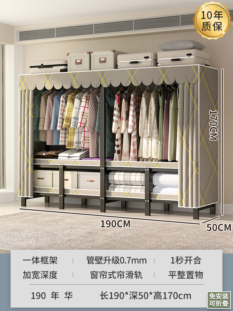 Tiantai Hualian 옷장 홈 침실 간단한 현대 간단한 천 옷장 무료 설치 접이식 대형 옷장 기숙사스토어 가기
