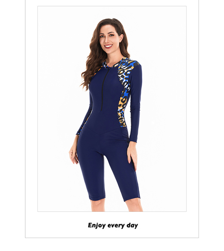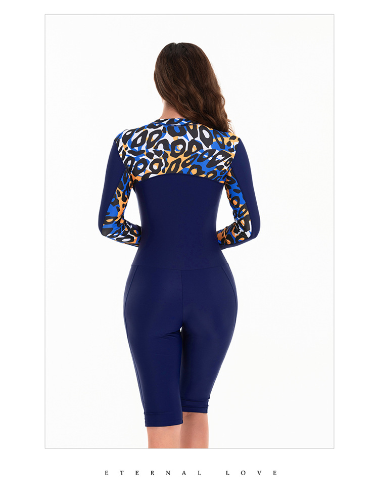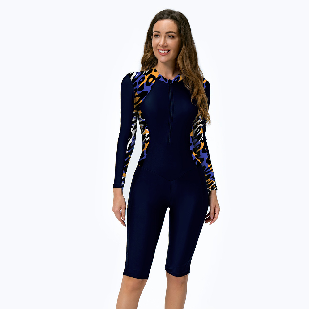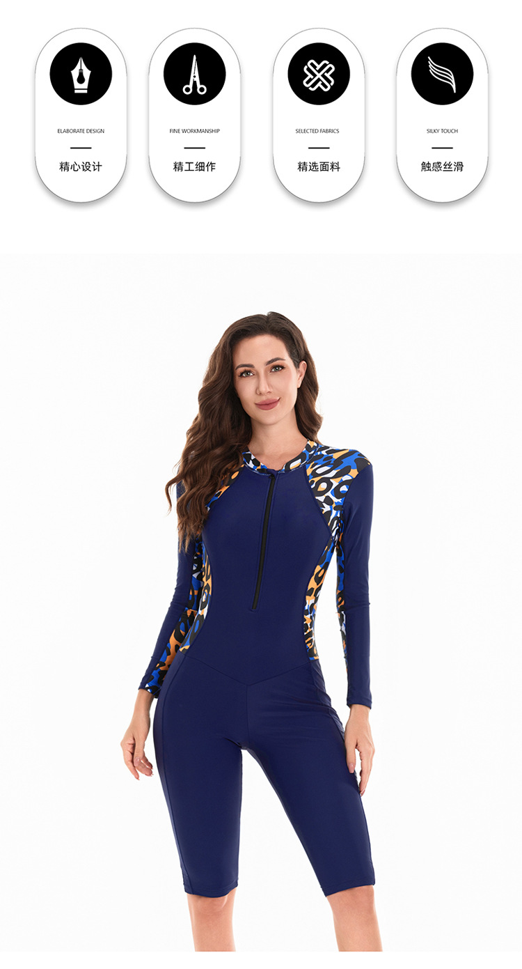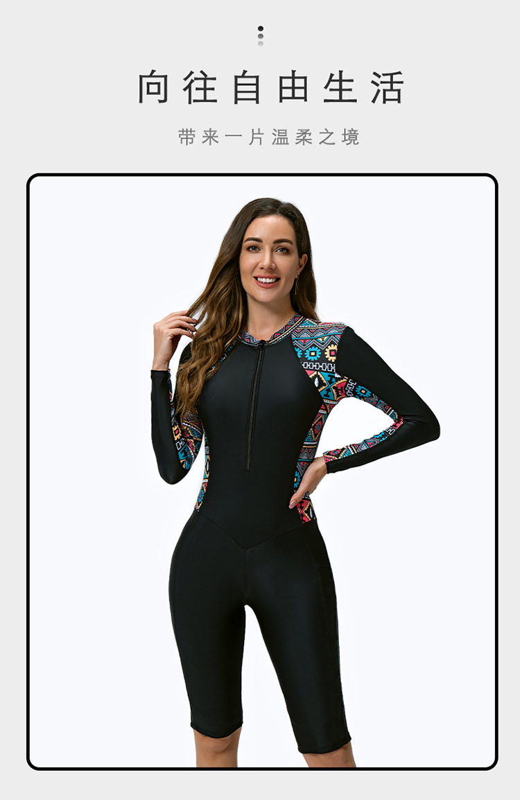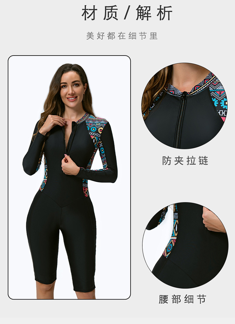 2025 새로운 스포츠 수영복 원피스 긴 소매 안티 스포츠 높은 탄성 패브릭 지퍼 인쇄 크로스 보더 타이트 수영복