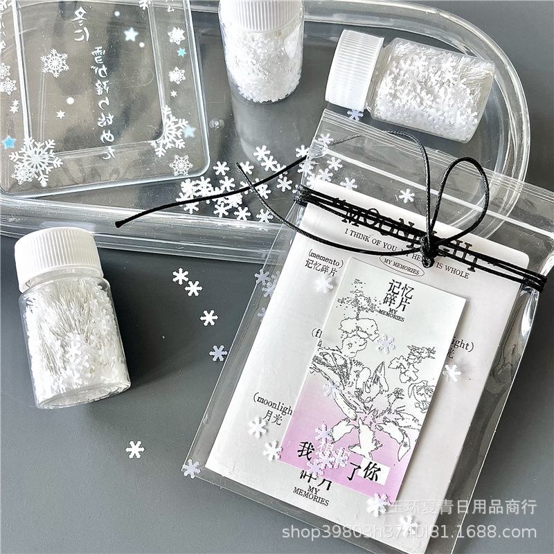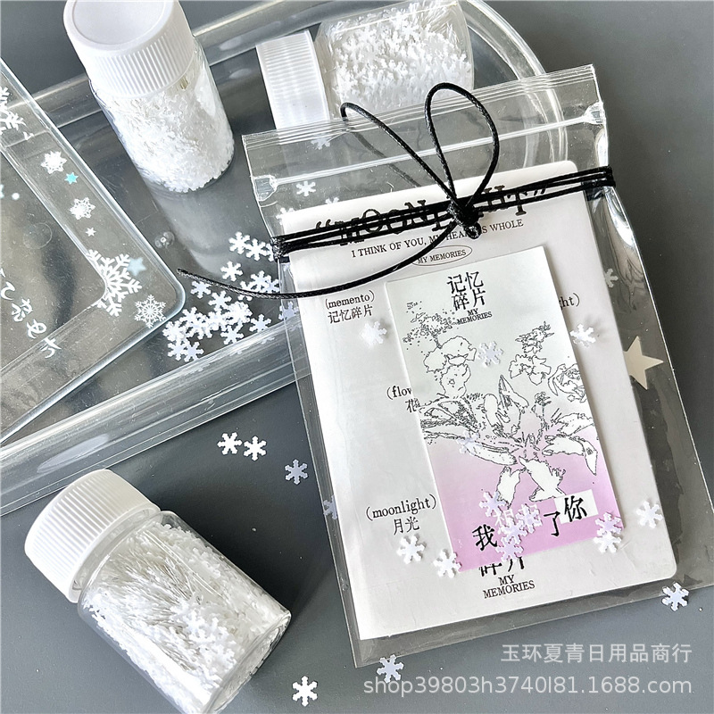 Ins 흰색 눈송이 분위기 장식 스팽글 DIY 선물 카드 헤드 충전 쉐이크 음악 포장 재료스토어 가기