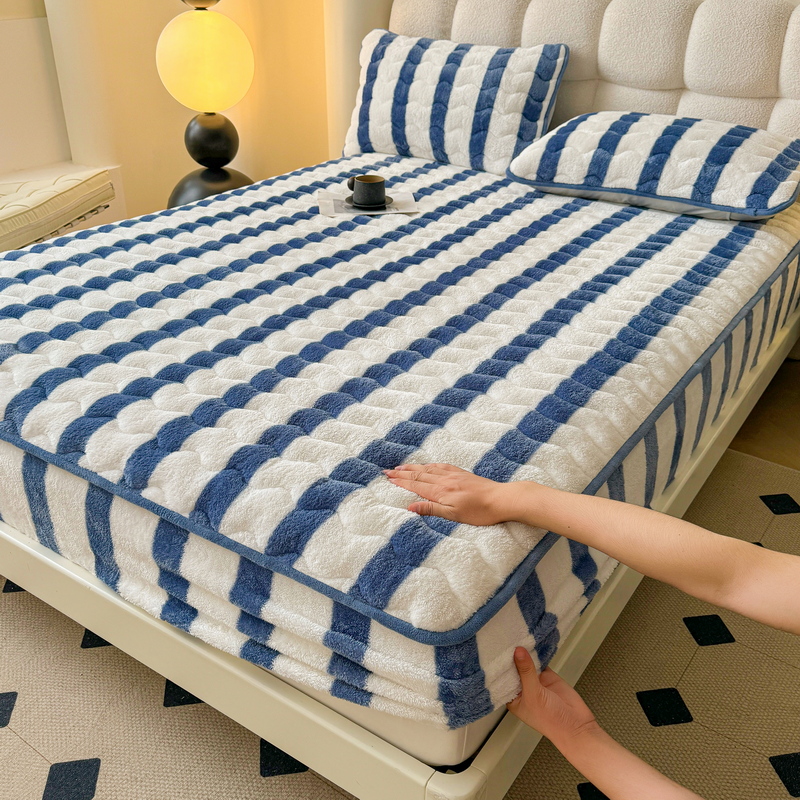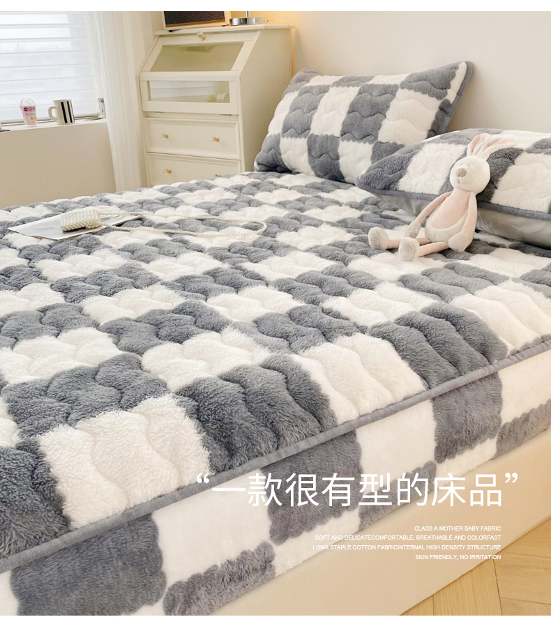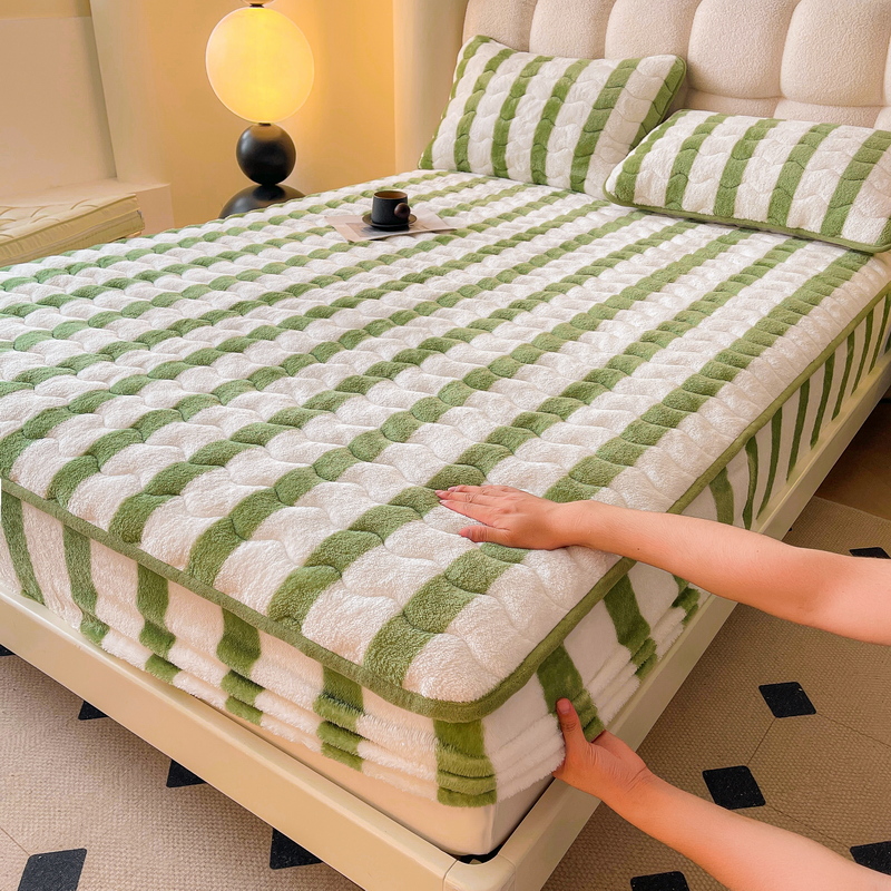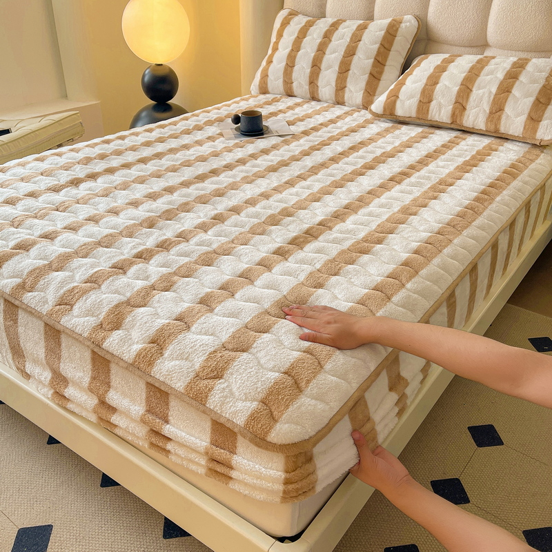 Tiantai Hualian 2024 새로운 우유 벨벳 침대 커버 겨울 기모 두꺼운 면 매트리스 보호 커버 산호 방법스토어 가기