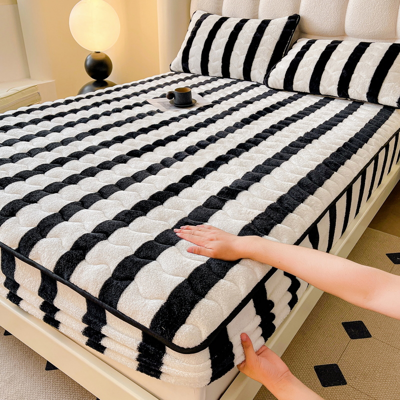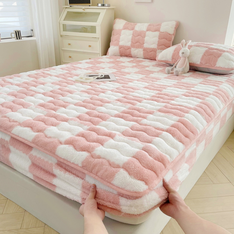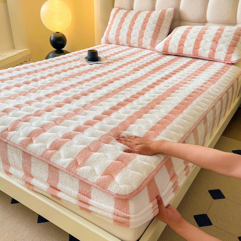 Tiantai Hualian 2024 새로운 우유 벨벳 침대 커버 겨울 기모 두꺼운 면 매트리스 보호 커버 산호 방법