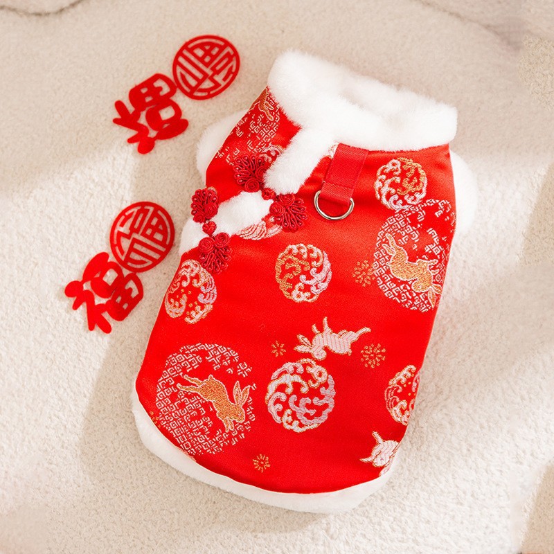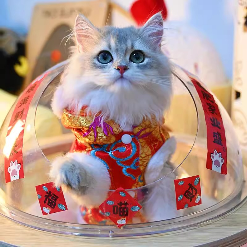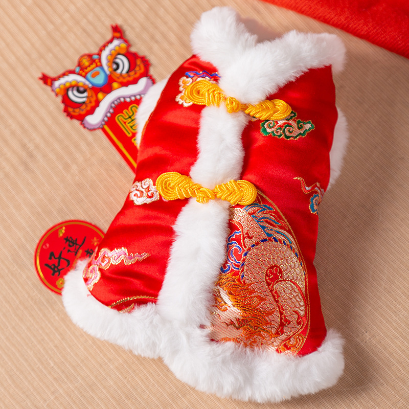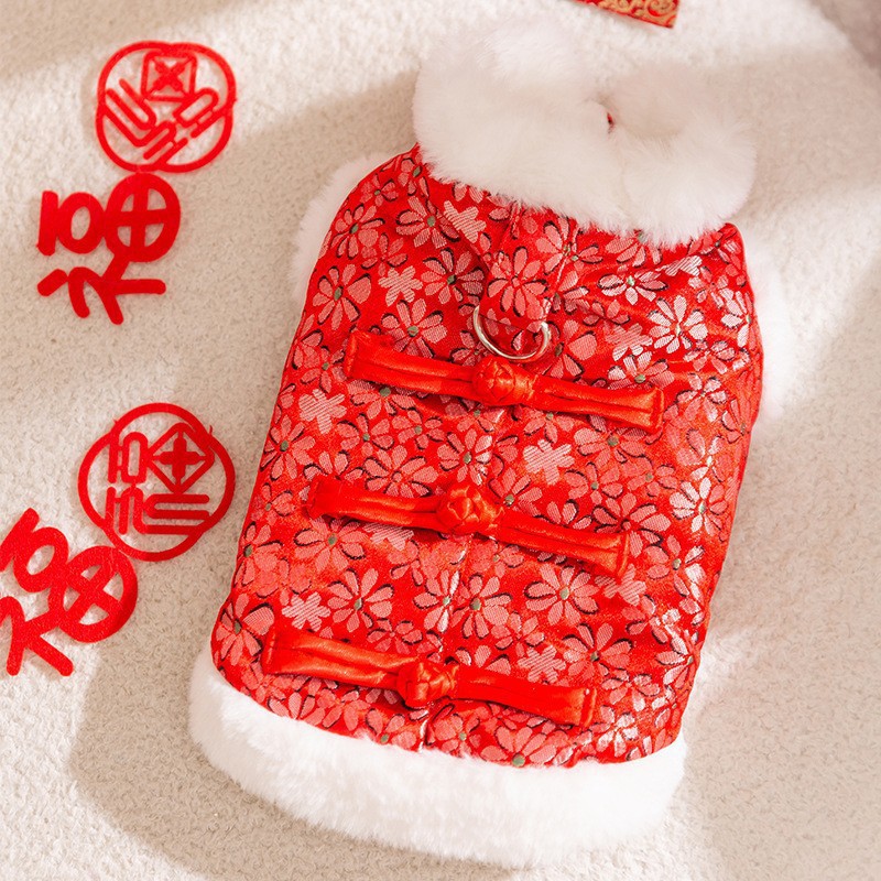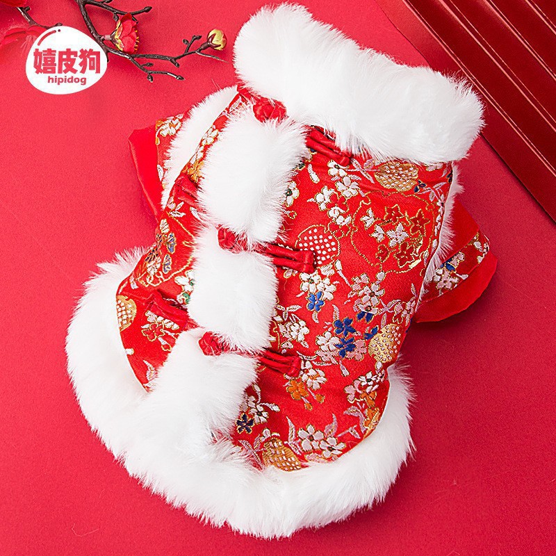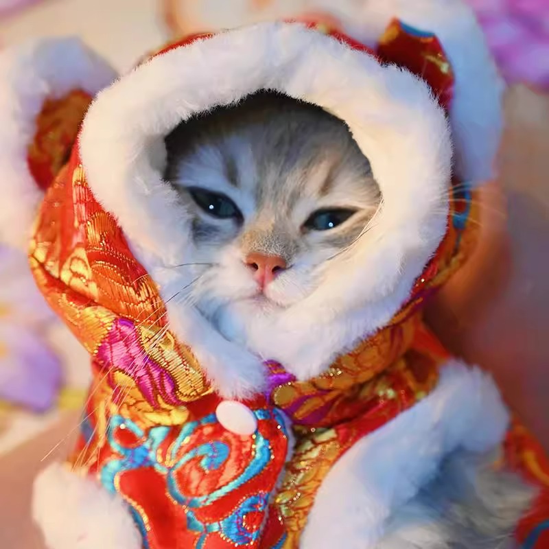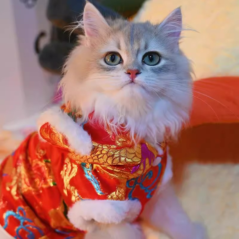 마밍 신년 옷 겨울 두꺼운 당나라 원피스 애완 동물 고양이 가을과 겨울 머펫 푸른 고양이 새해 축제 가운