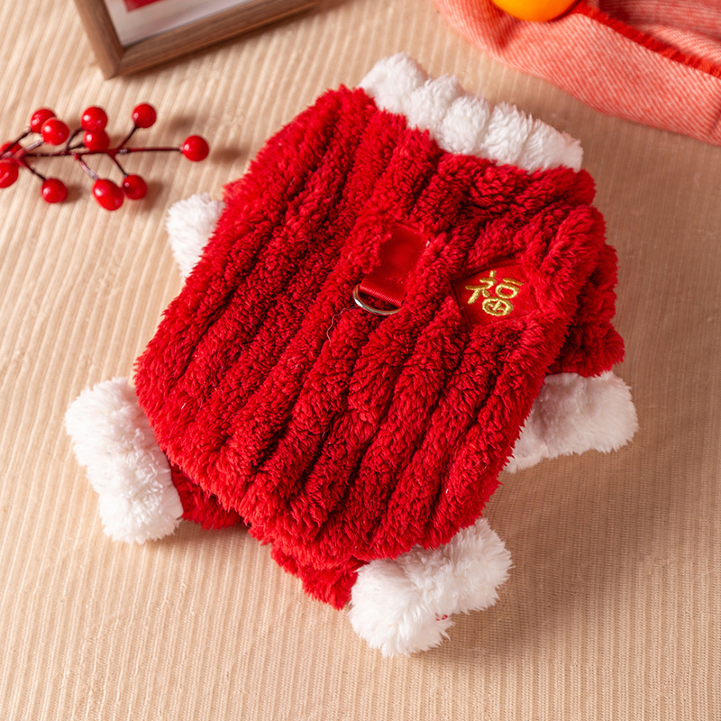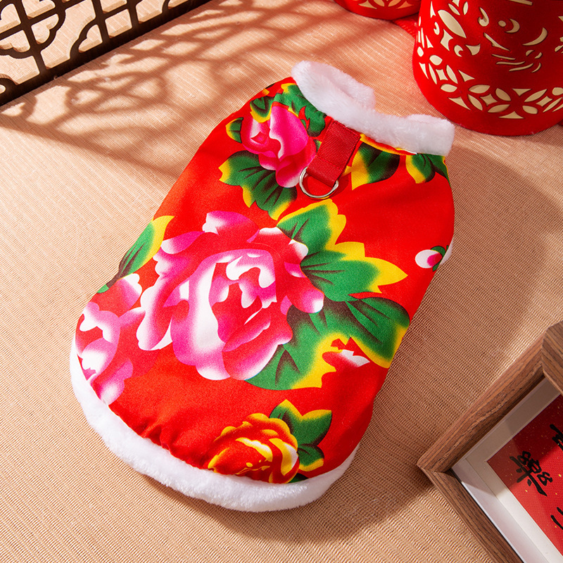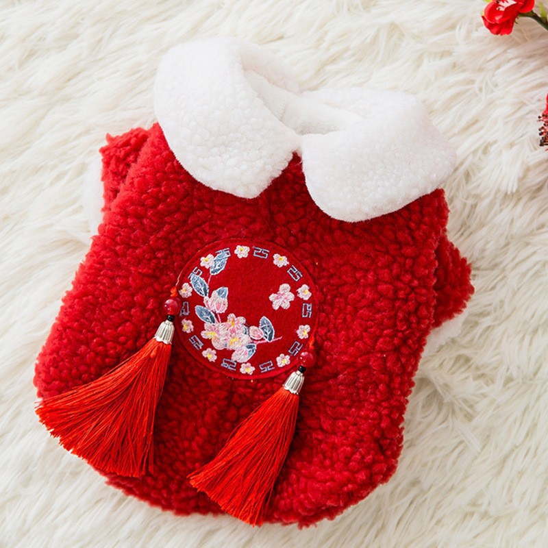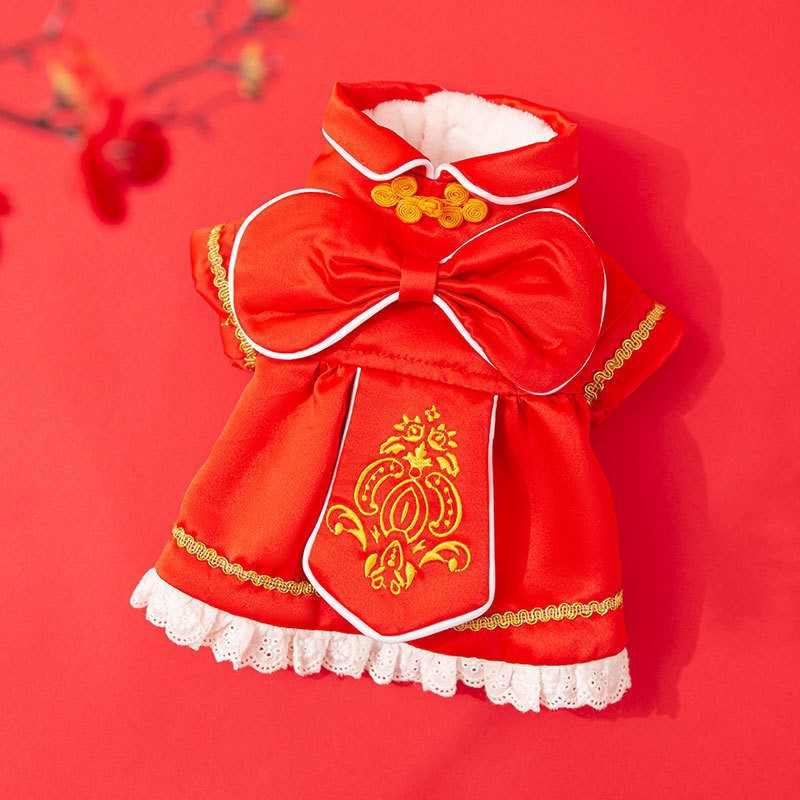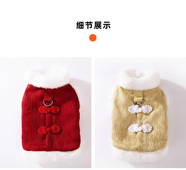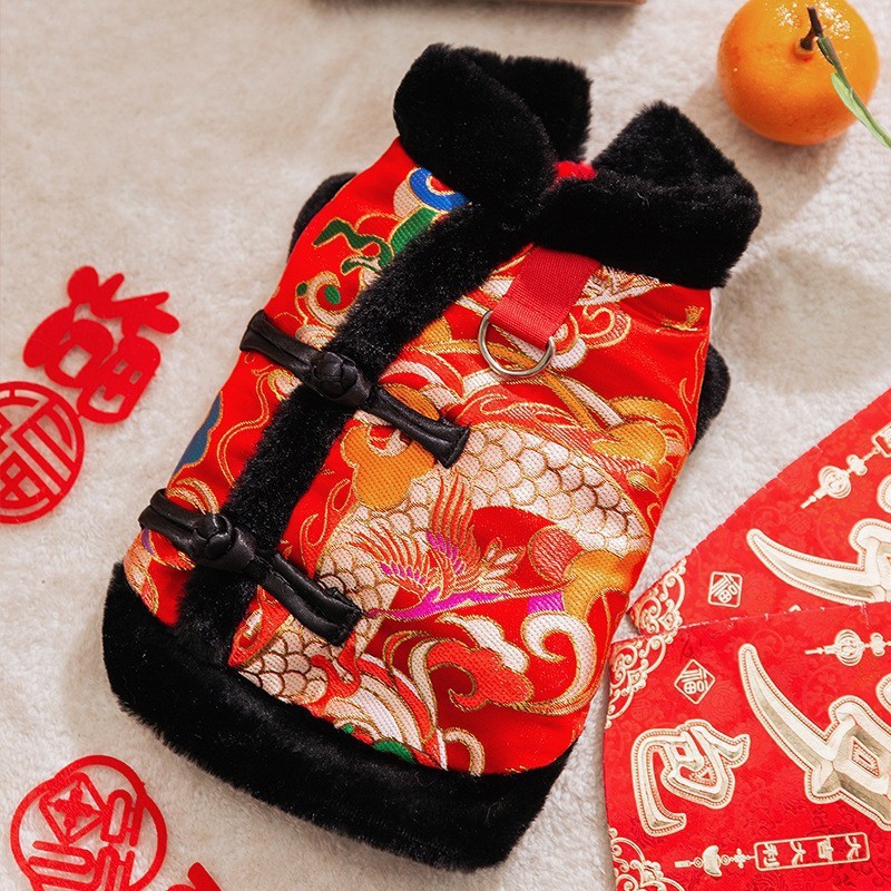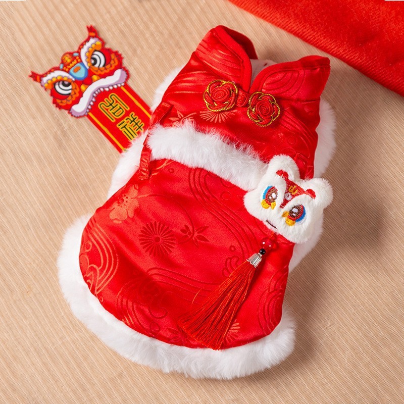 마밍 신년 옷 겨울 두꺼운 당나라 원피스 애완 동물 고양이 가을과 겨울 머펫 푸른 고양이 새해 축제 가운