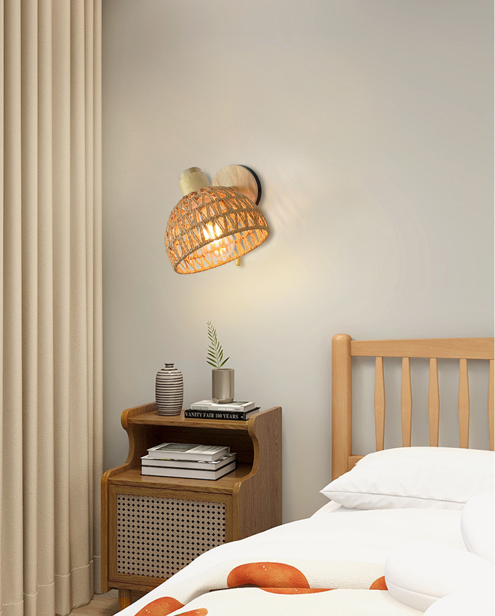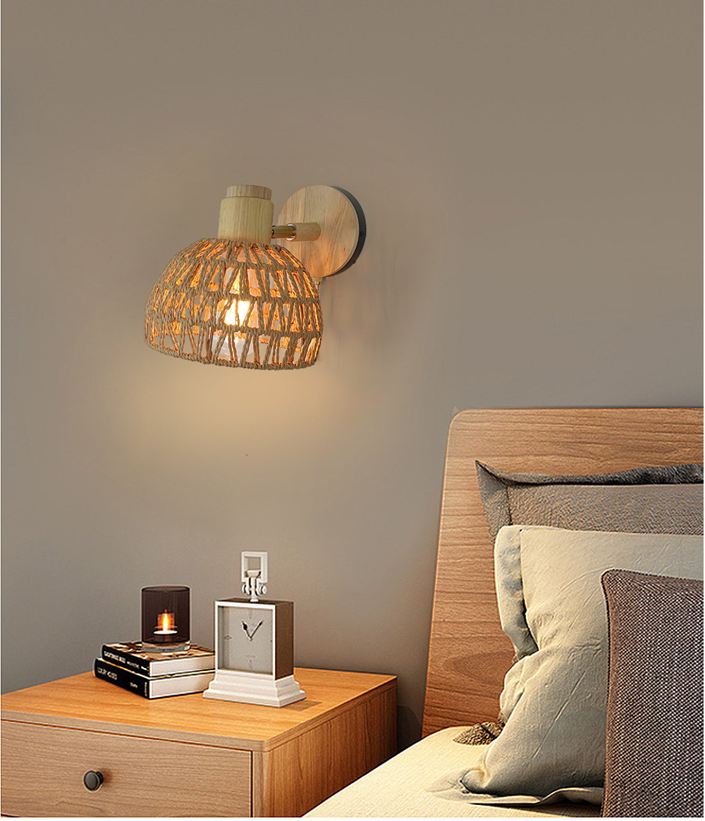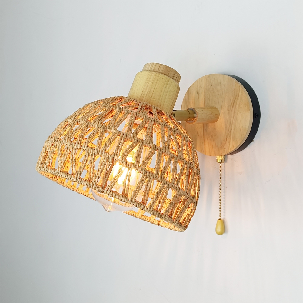 국경 등나무 벽 램프 침대 옆 침실 거울 전면 벽 램프 홈스테이 짠 벽 램프 농가 국가 종이 등나무 지퍼 램프