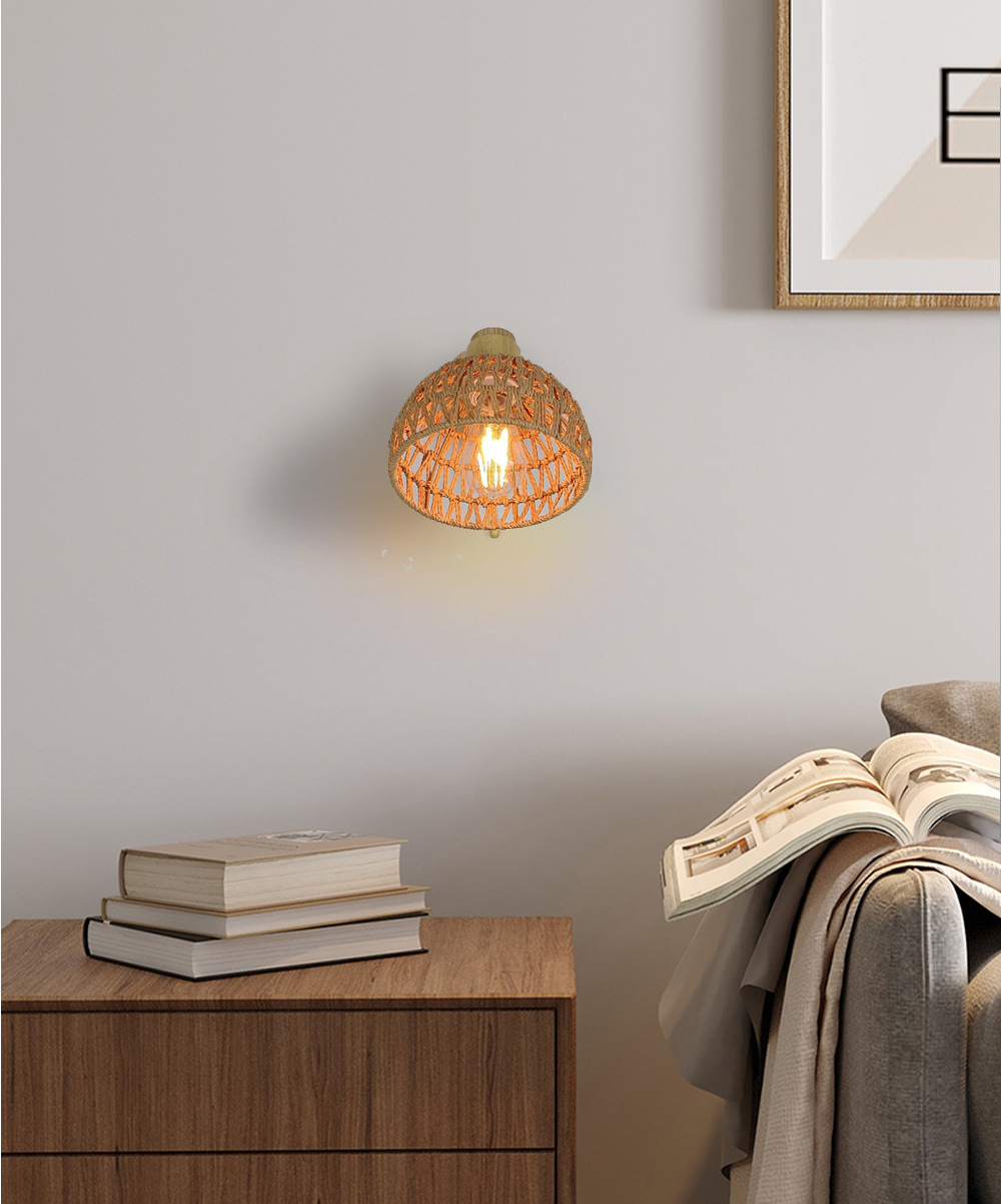 국경 등나무 벽 램프 침대 옆 침실 거울 전면 벽 램프 홈스테이 짠 벽 램프 농가 국가 종이 등나무 지퍼 램프스토어 가기