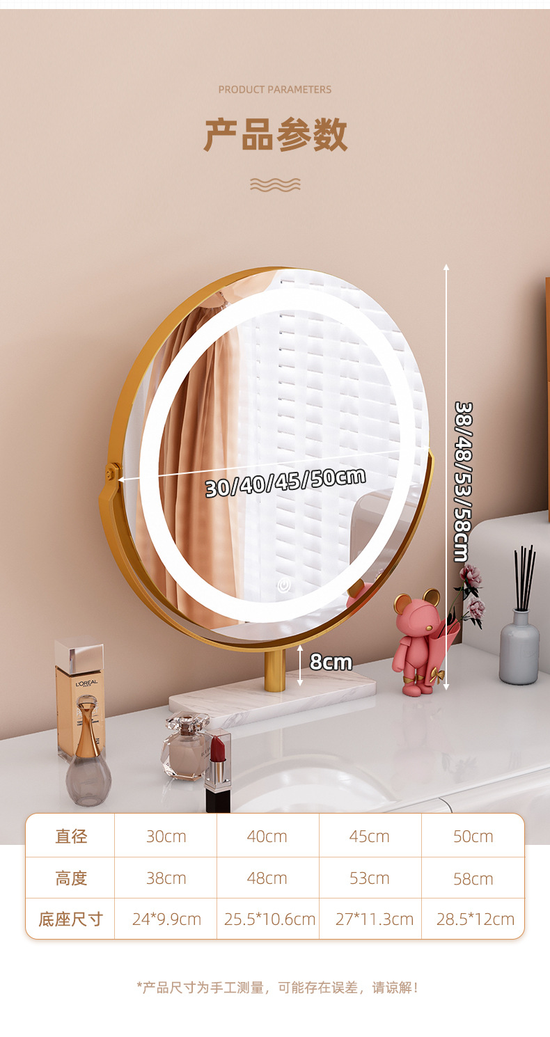 가벼운 고급 Led 메이크업 거울 램프 데스크탑 드레싱 테이블 기숙사 침실 라이트 충전식 대형 회전 거울