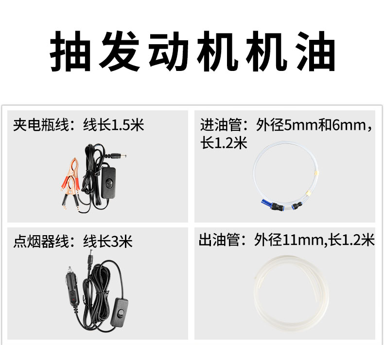 • 엔진 오일 슬리브 + 배터리 클램프 + 220V 전원 코드(오일 배럴 없음)
