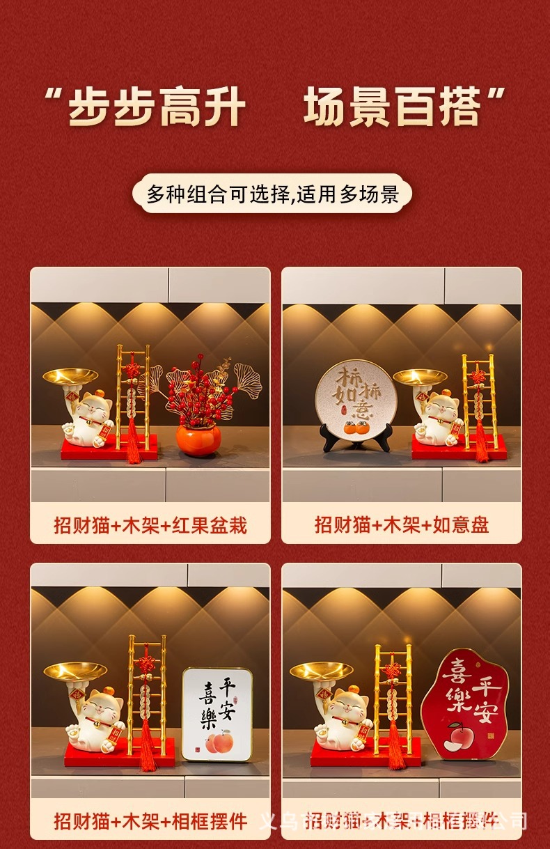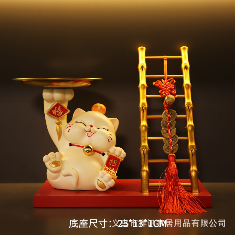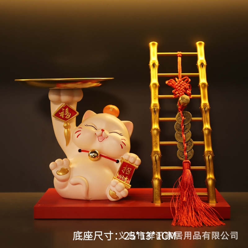 • Yuanbao 빨간 귀 행운의 고양이 + 황금 사다리 보관함