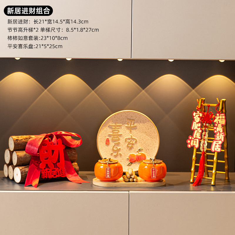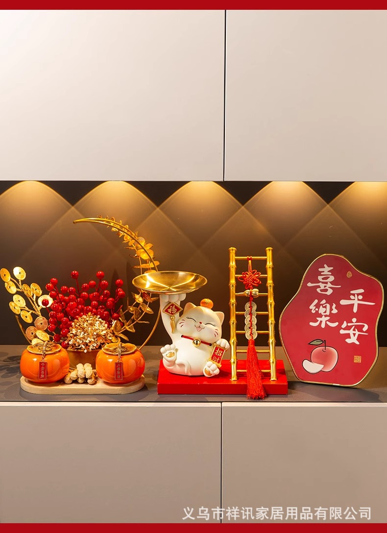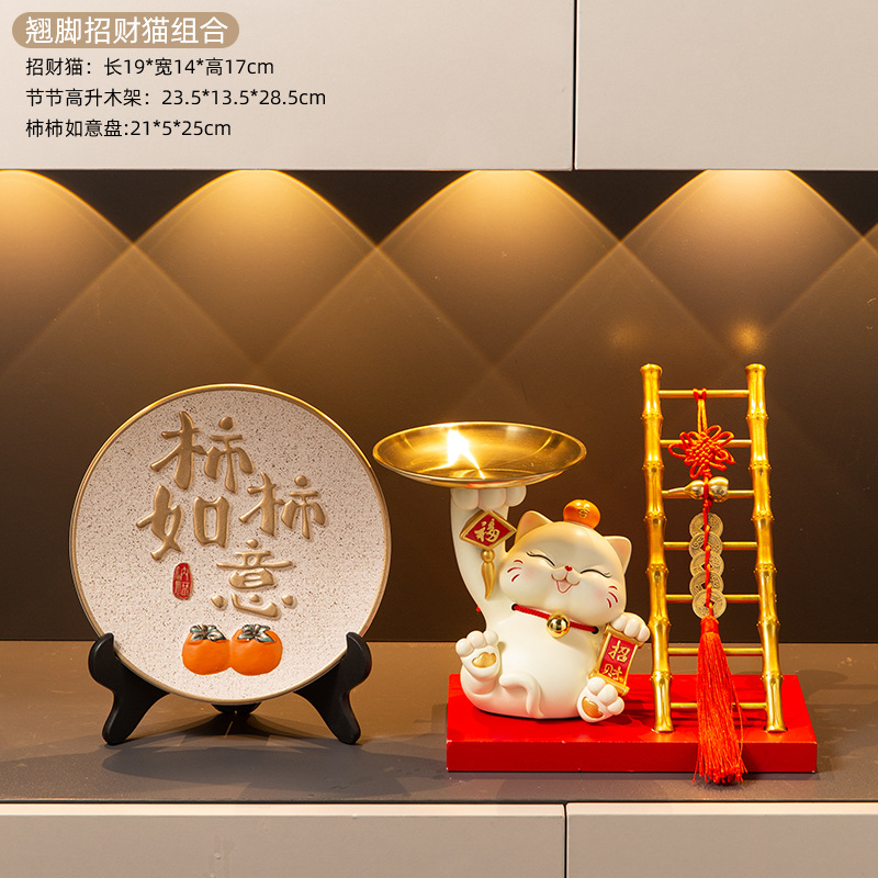 • 사다리 베이지 고양이 + 장작 + 도자기 감 + 집에 들어갈 때 행운을 빌어요 베이지 행운 고양이 + 감꽃