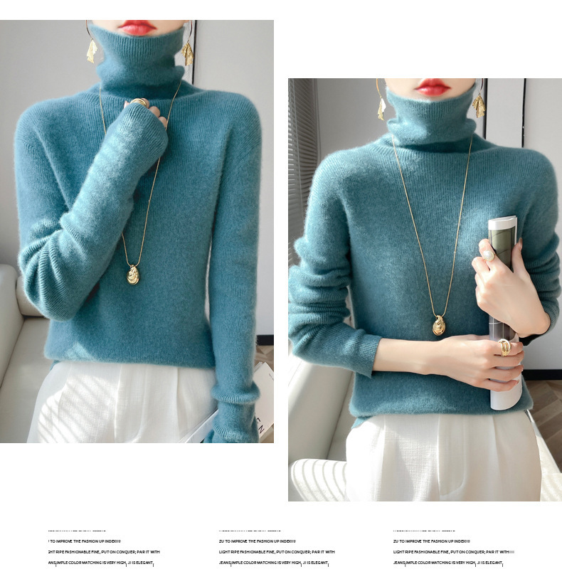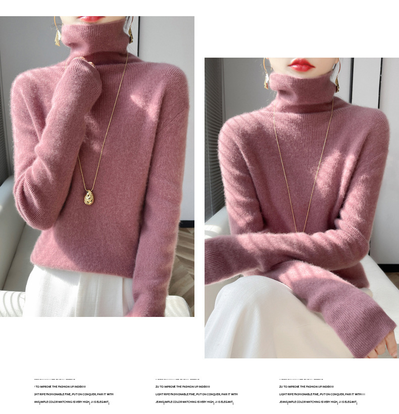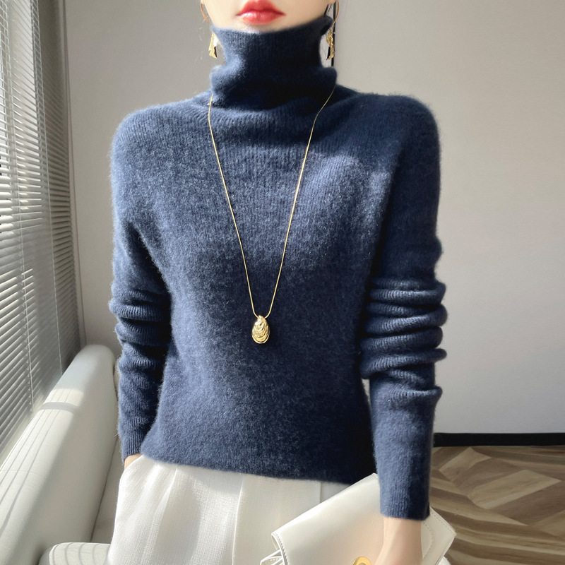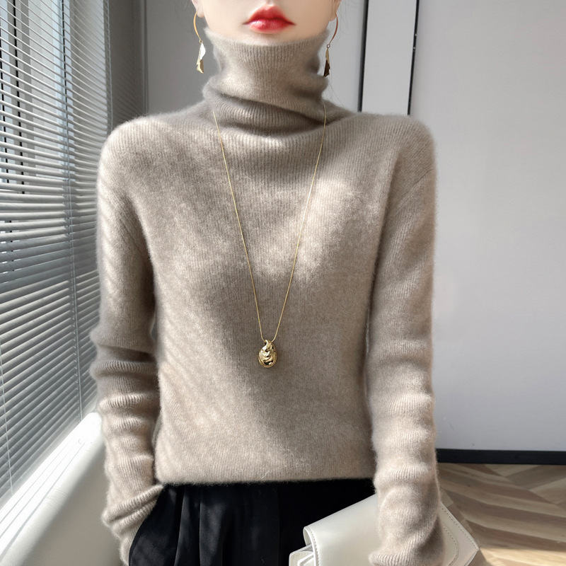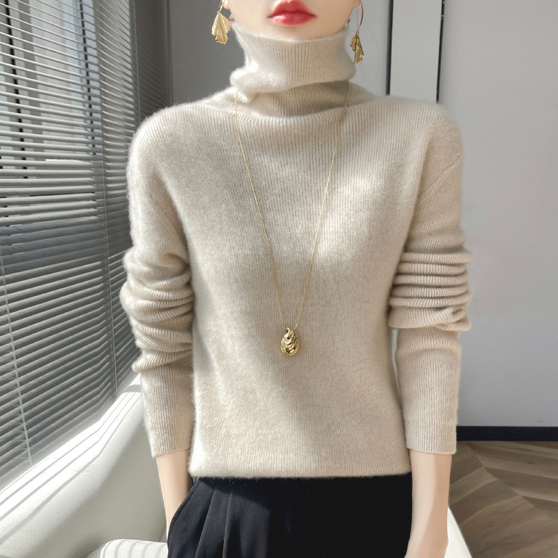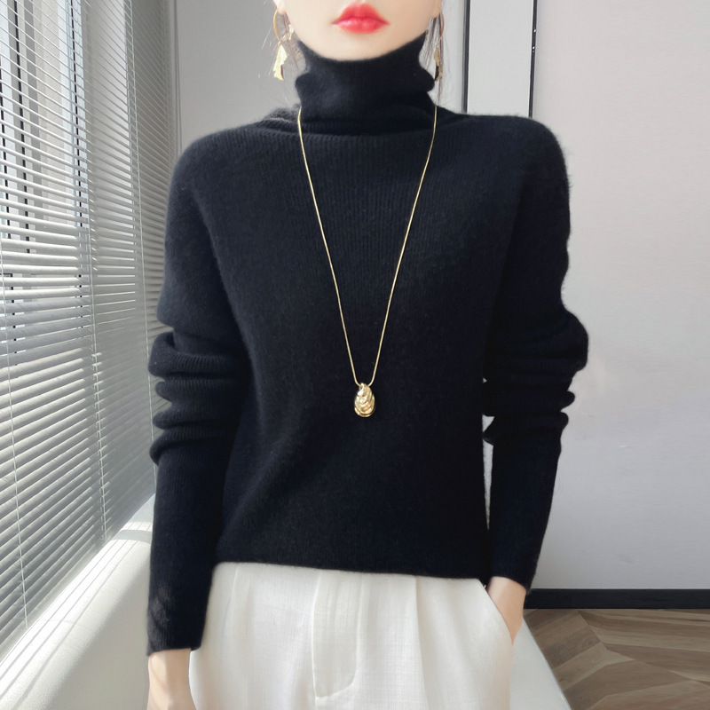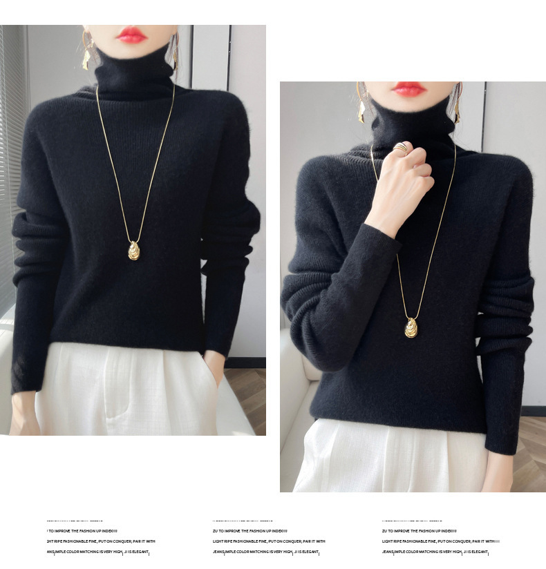 뜨거운 판매 니트 스웨터 가을과 겨울 새로운 여성 더미 칼라 간단한 긴 소매 풀오버 니트 베이스 셔츠 터틀넥 스웨터스토어 가기