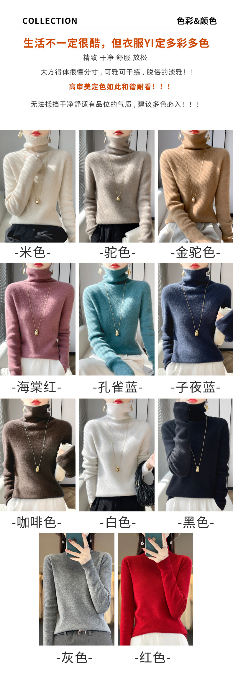 뜨거운 판매 니트 스웨터 가을과 겨울 새로운 여성 더미 칼라 간단한 긴 소매 풀오버 니트 베이스 셔츠 터틀넥 스웨터
