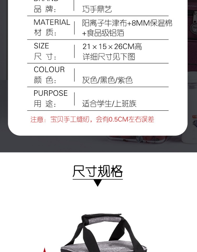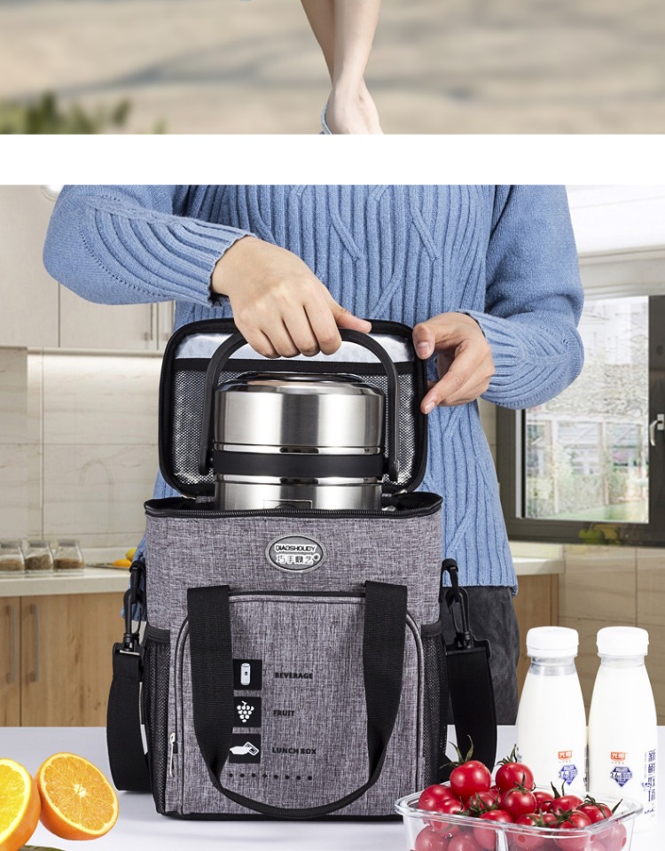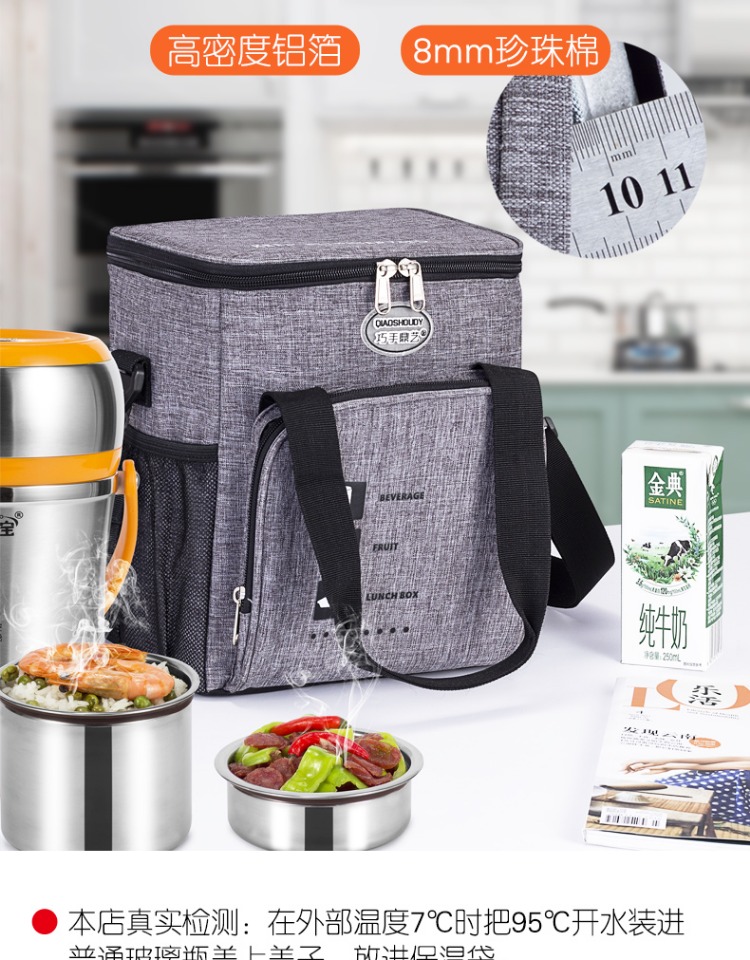 Tiantai Hualian 도시락 가방 휴대용 열 보존 가방 알루미늄 호일 쌀 냉장고 가방 대용량 도시락 상자를 가진 두꺼운 옥스포드 천