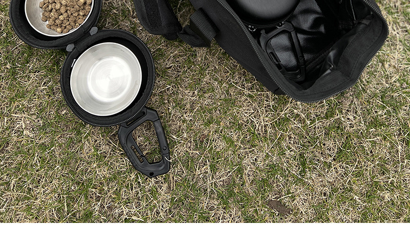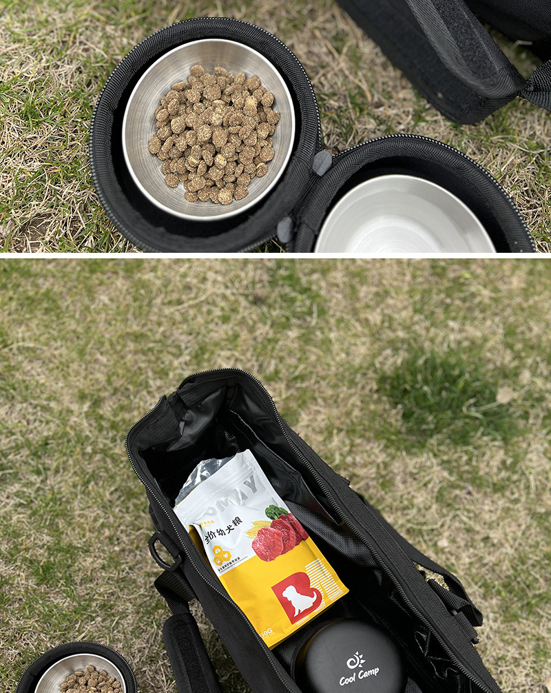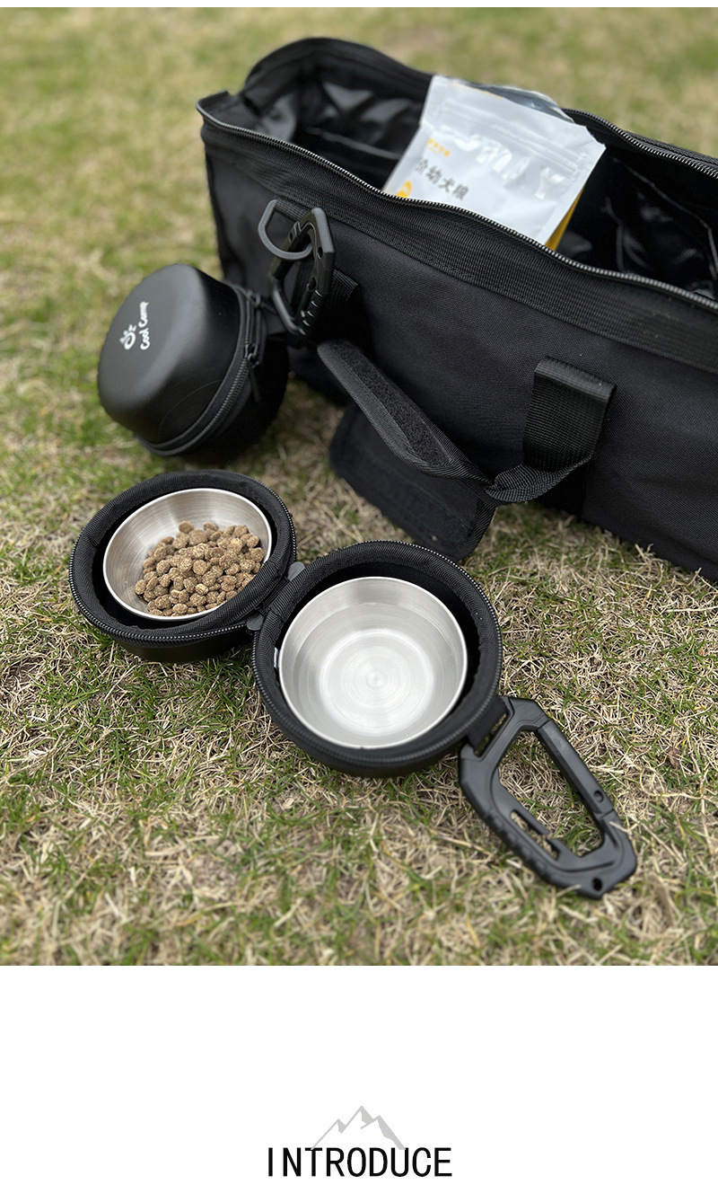 야외 식수 그릇, 휴대용 고양이 그릇, 개 그릇, 스테인레스 스틸 더블 그릇, 퀵 행잉 가방, 애완 동물 용품 식기 세트 상자스토어 가기