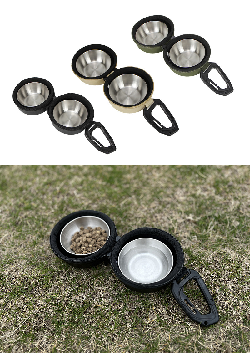 야외 식수 그릇, 휴대용 고양이 그릇, 개 그릇, 스테인레스 스틸 더블 그릇, 퀵 행잉 가방, 애완 동물 용품 식기 세트 상자