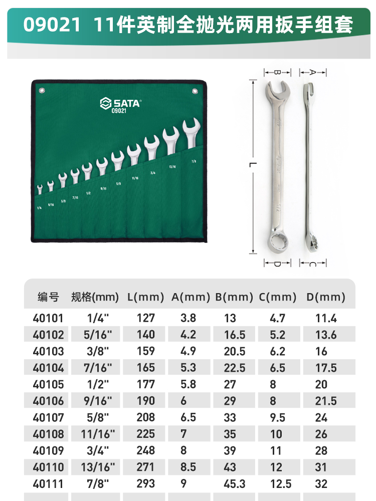 • [11개 세트] 영국식 완전 광택 이중 목적 렌치-09021