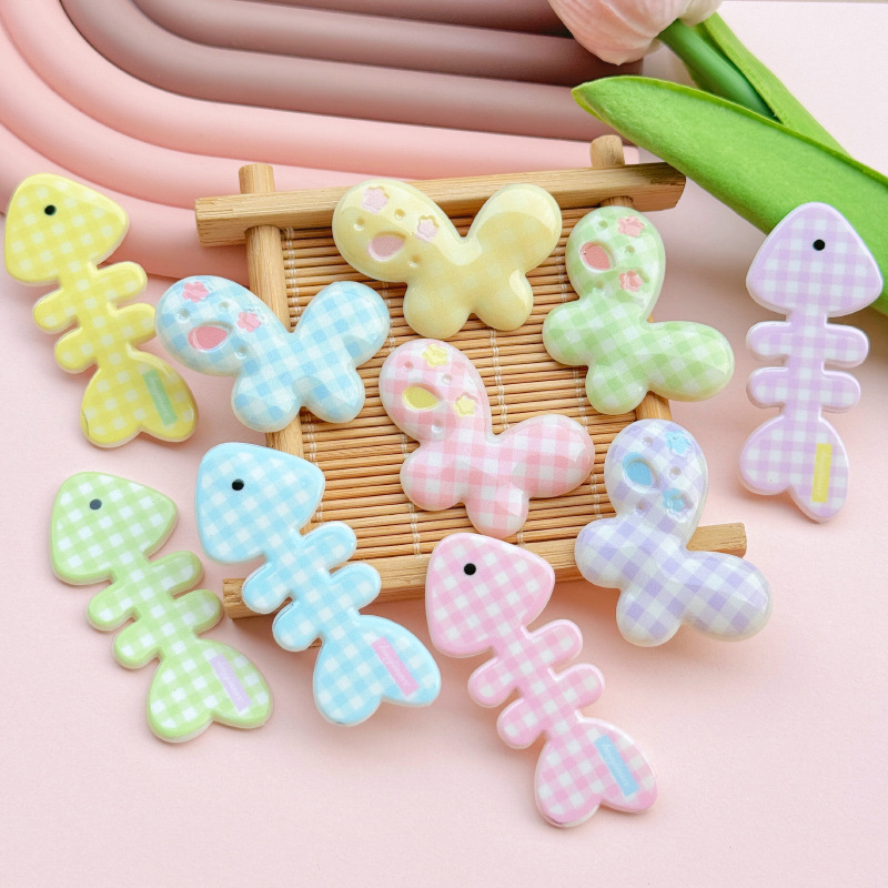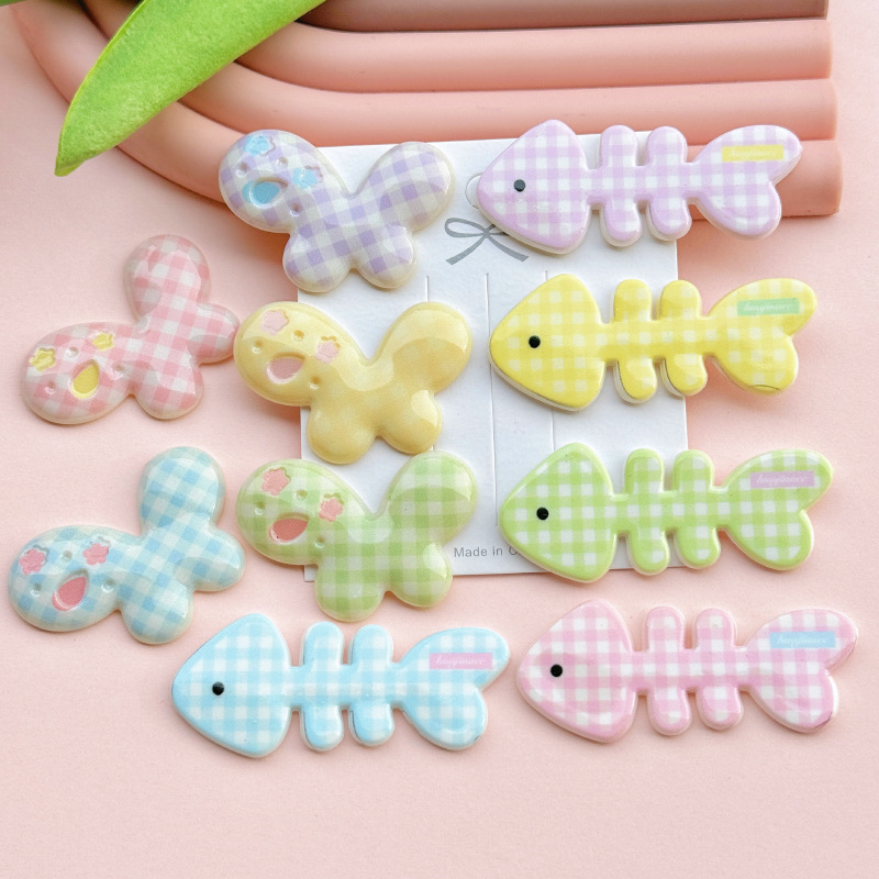 아크릴 격자 무늬 작은 물고기 뼈 나비 어린이 머리핀 DIY 액세서리 휴대 전화 케이스 구멍 신발 패치 소재스토어 가기