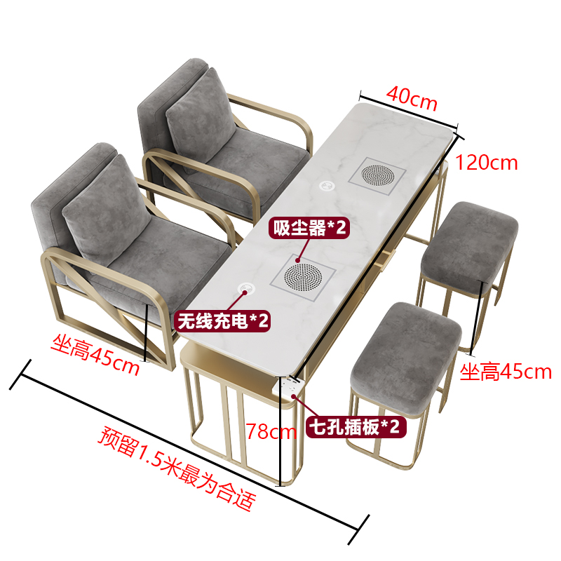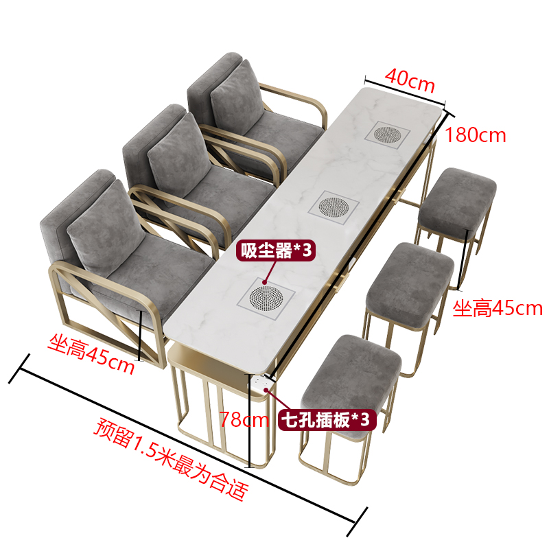 Tiantai Hualian 라이트 럭셔리 네일 테이블 대리석 표면 진공 청소기 싱글 더블 3 인 테이블과 의자 서브넷 레드 테이블 및 의자 세트