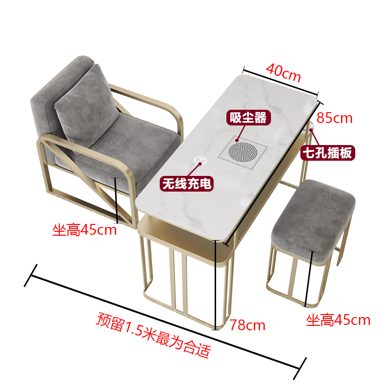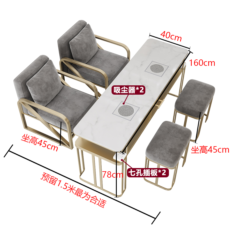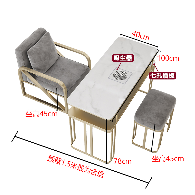 Tiantai Hualian 라이트 럭셔리 네일 테이블 대리석 표면 진공 청소기 싱글 더블 3 인 테이블과 의자 서브넷 레드 테이블 및 의자 세트스토어 가기