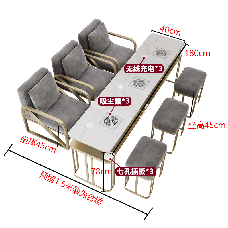 • 1.8M 다기능 대리석 싱글 테이블(진공청소기+소켓+무선충전*3