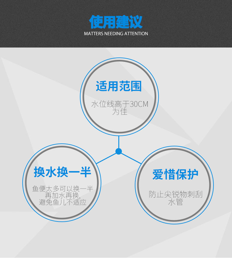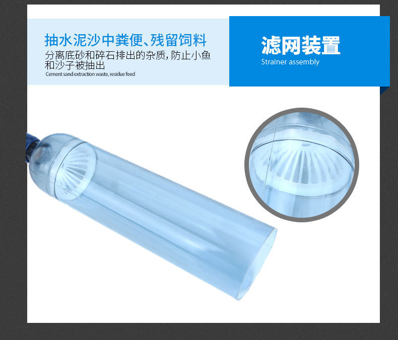 2:内置过滤网,防止将水中幼鱼或砂粒吸出缸外。