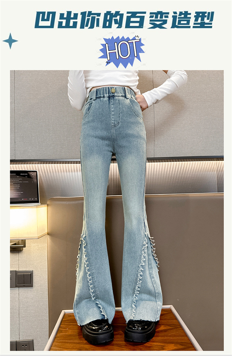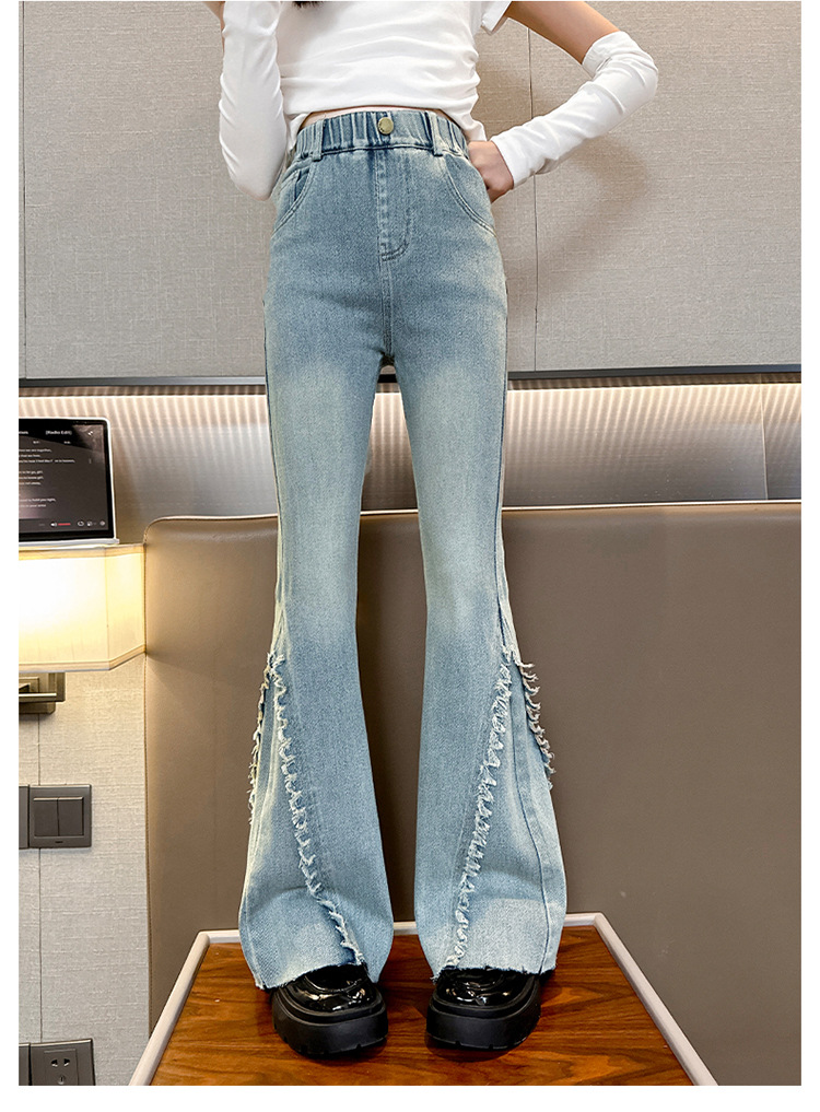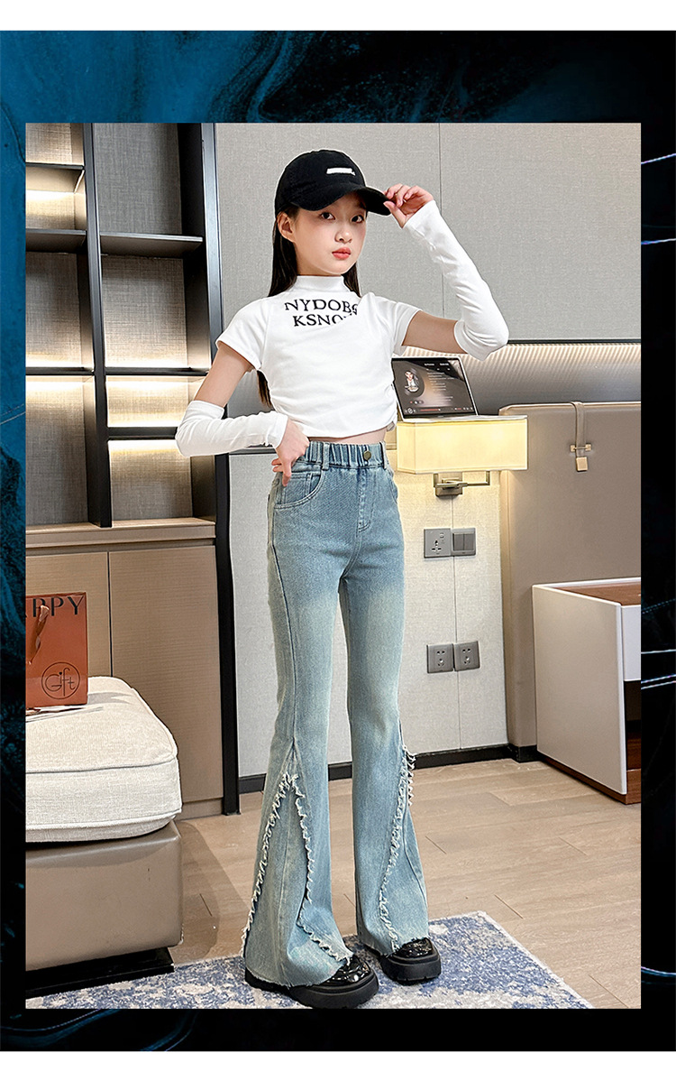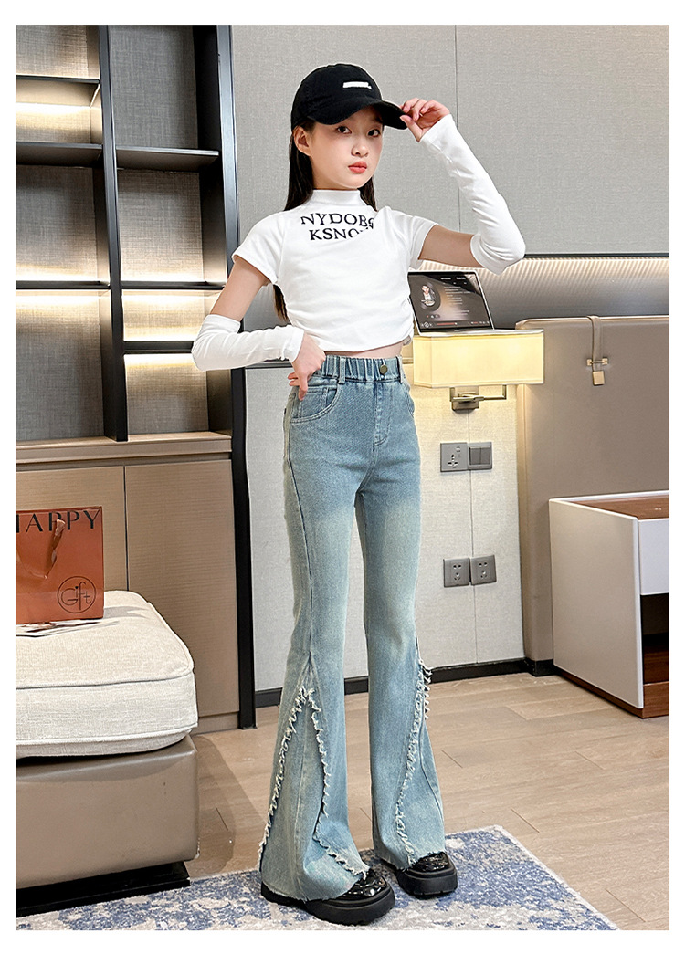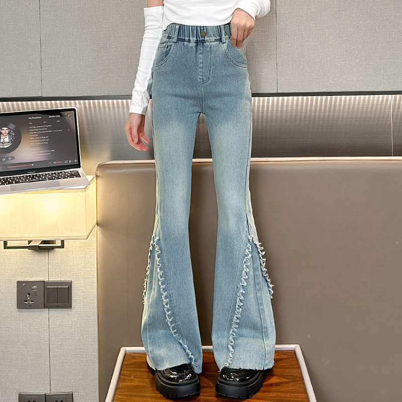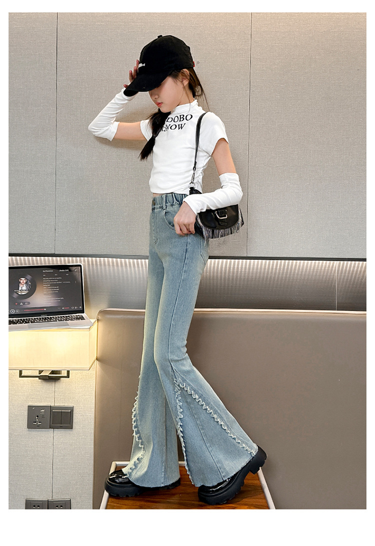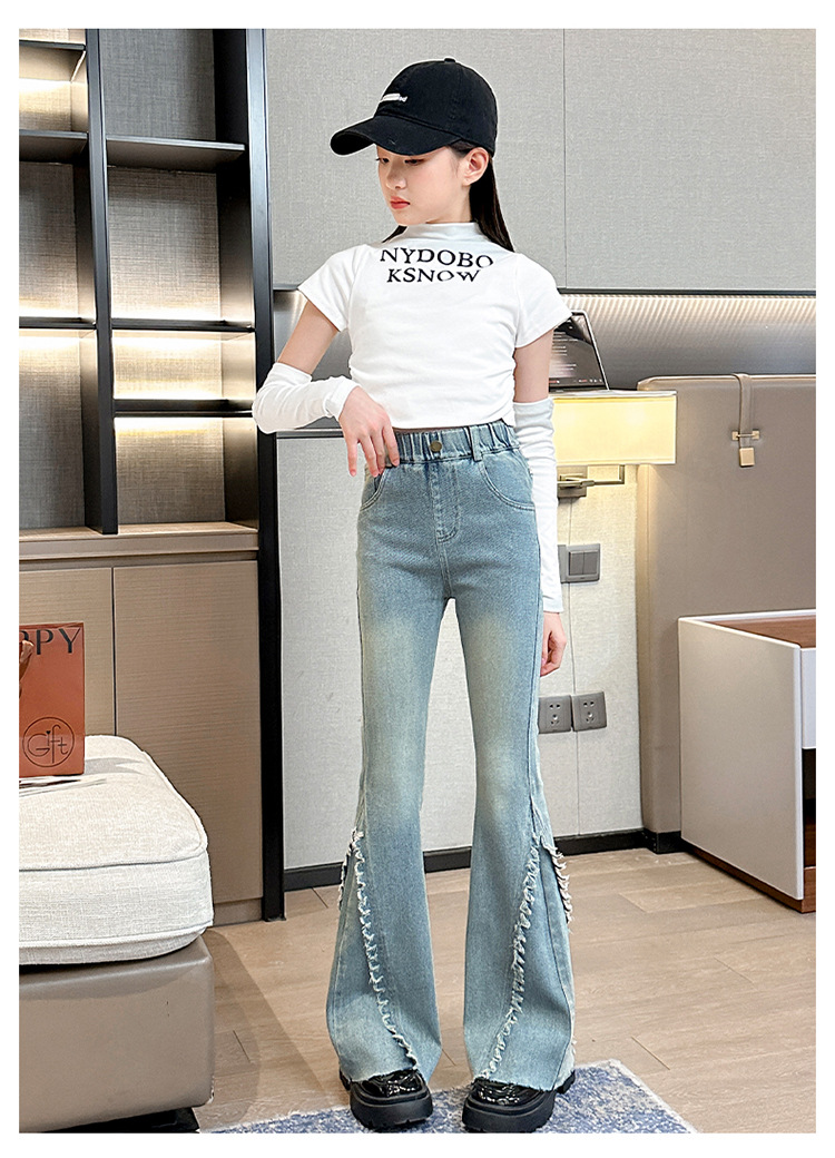 소녀 데님 꽃 바지 2025 봄 새로운 도착 서양식 소녀의 봄과 가을 스트레치 슬림-중간 및 큰 어린이 봄 바지스토어 가기